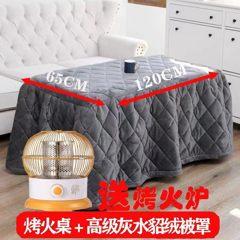 120 thick bamboo folding thermal table + gray mink fur quilt cover + roasting stove
