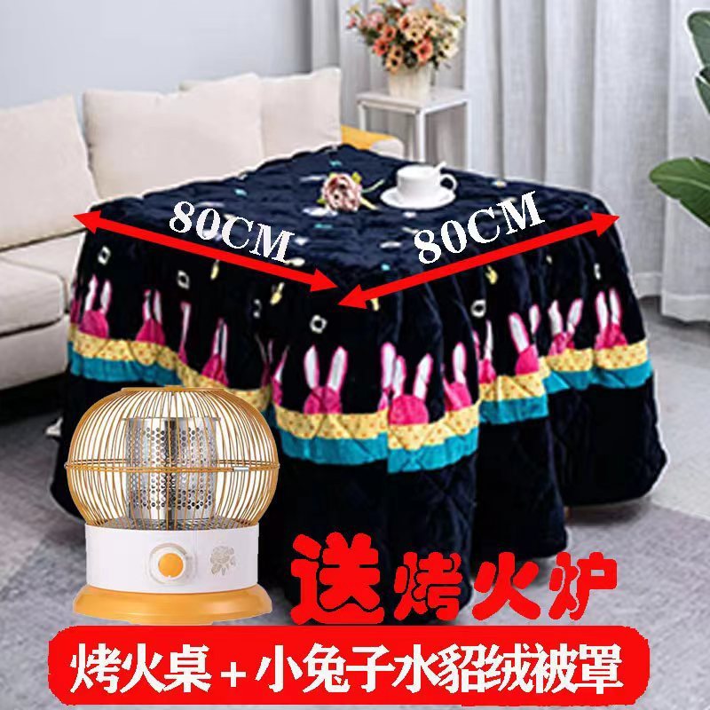 80 thick bamboo folding thermal table + bunny mink fur quilt cover + roasting stove