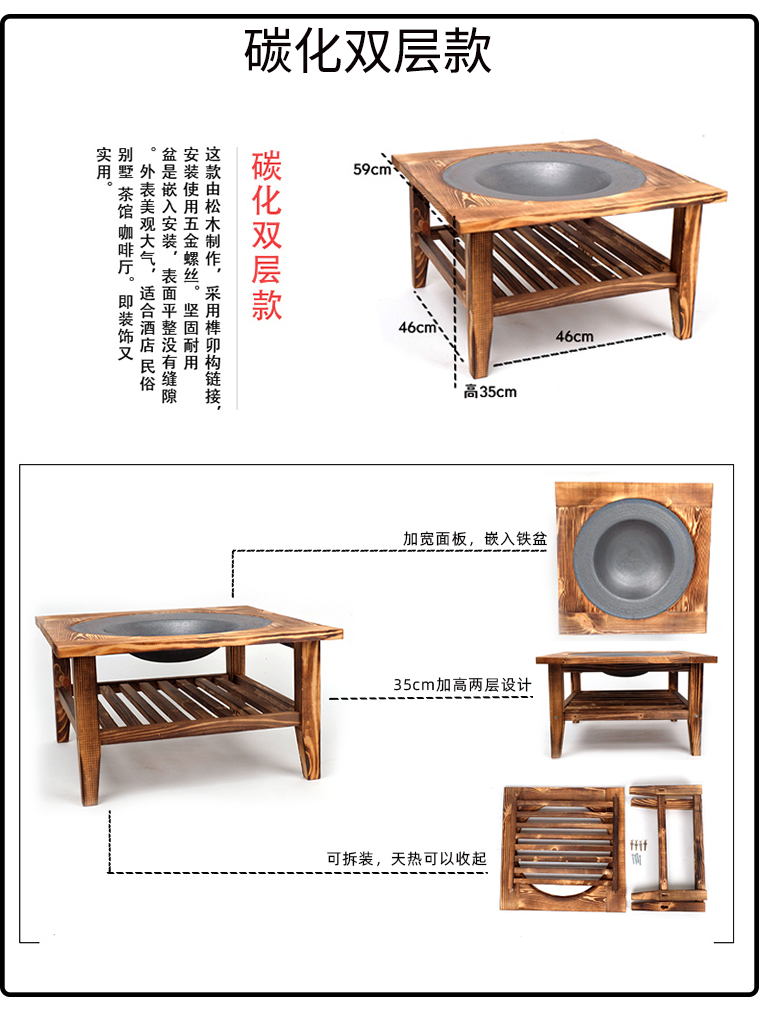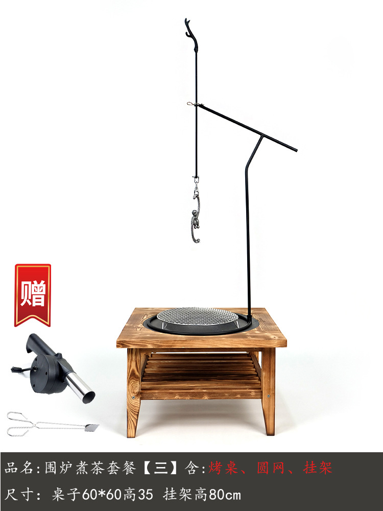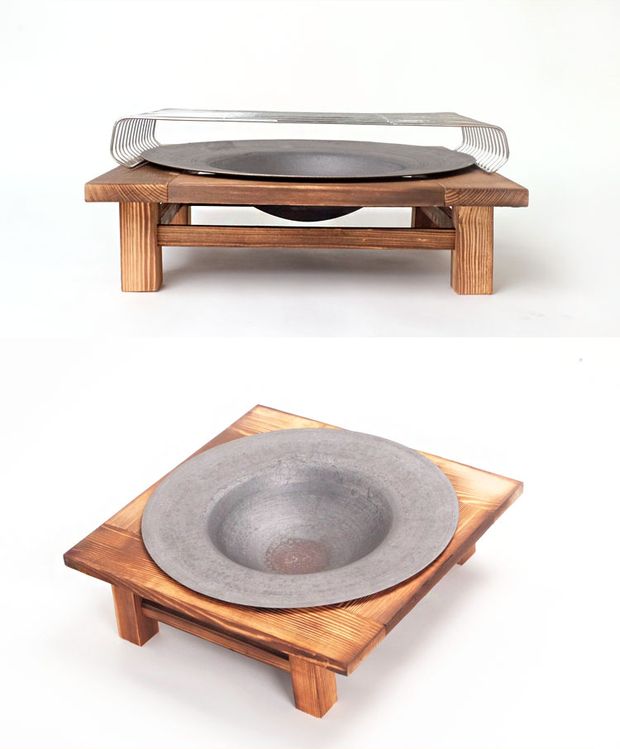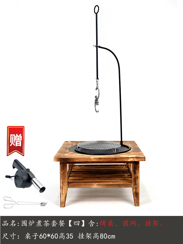 pine double layer + cast iron basin + round bbq grill