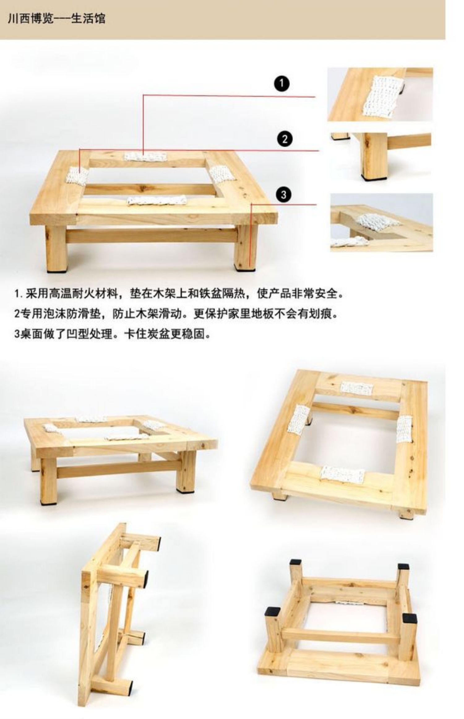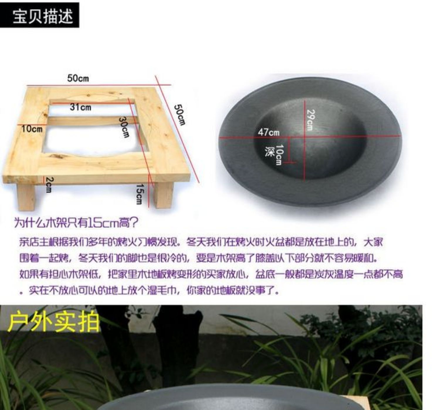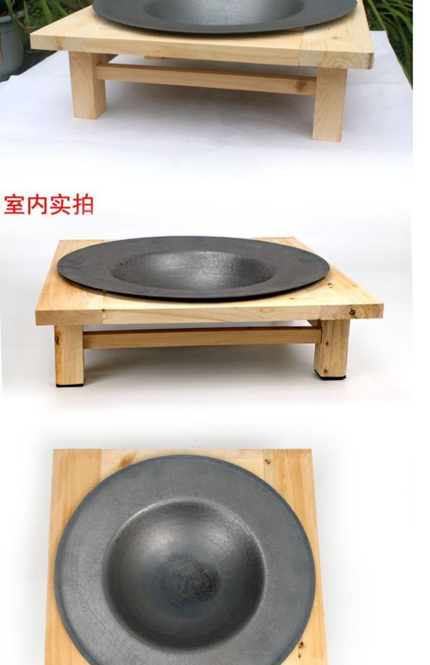 pine double layer + cast iron basin + round bbq grill