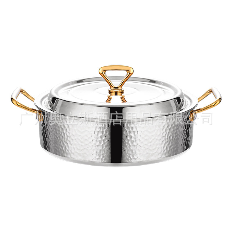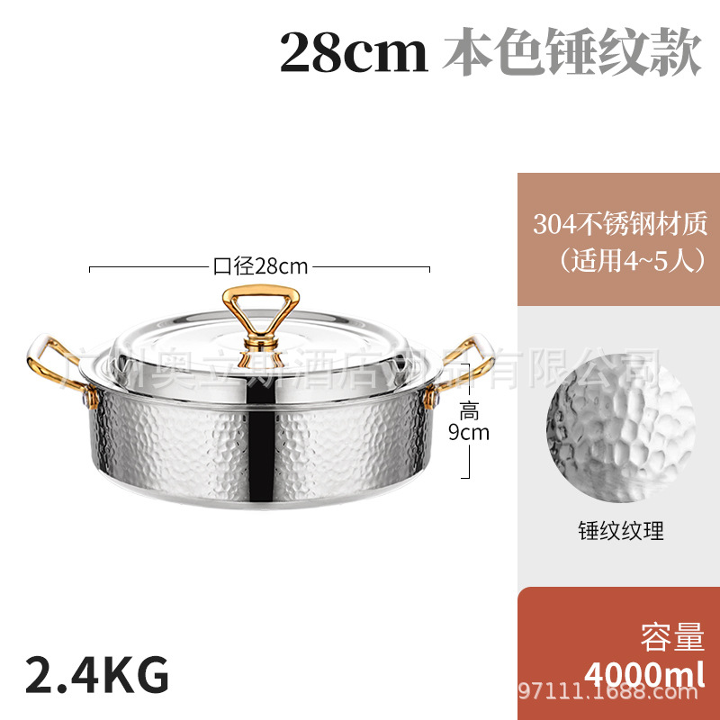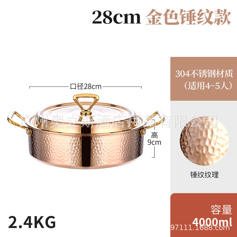 28cm golden hammer pattern clear soup pot [pot + stainless steel cover]]