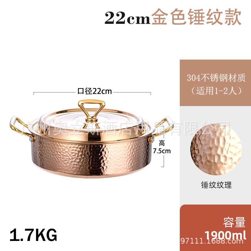 22cm golden hammer pattern clear soup pot [pot + stainless steel cover]]
