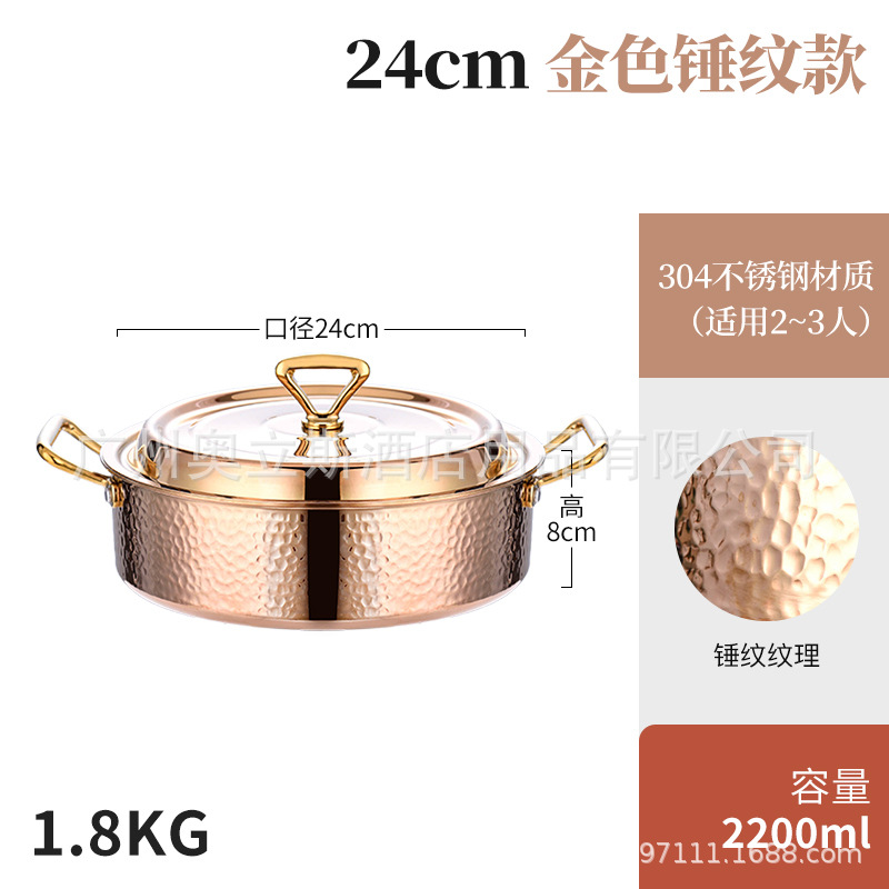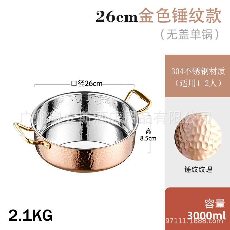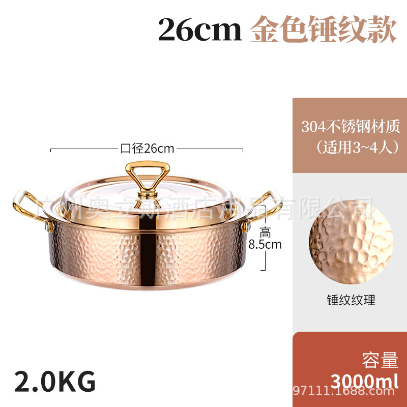 26cm golden hammer pattern clear soup pot [pot + stainless steel cover]]