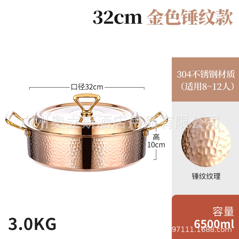 32cm golden hammer pattern clear soup pot [pot + stainless steel cover]]