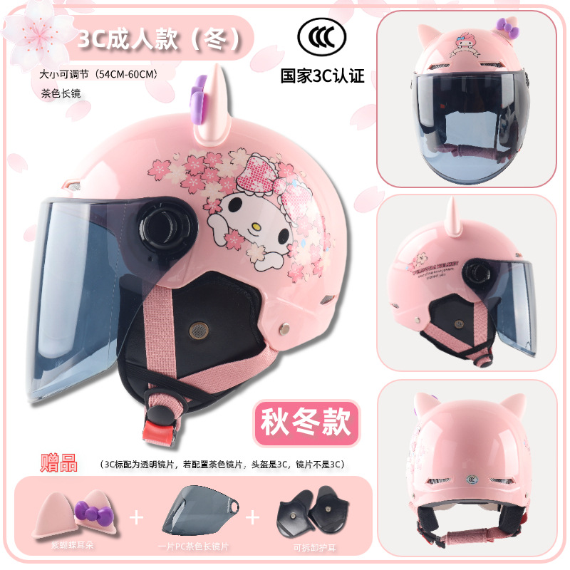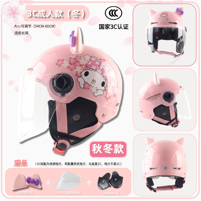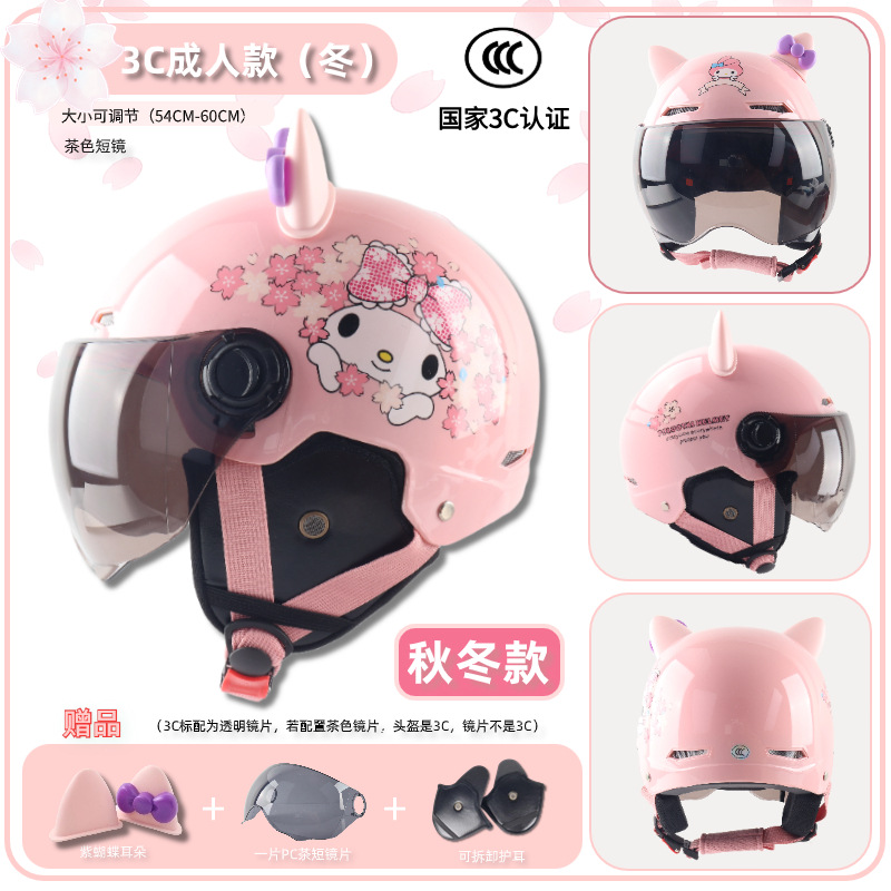 3c adult-bright cherry blossom powder [winter earflaps] + transparent short mirror