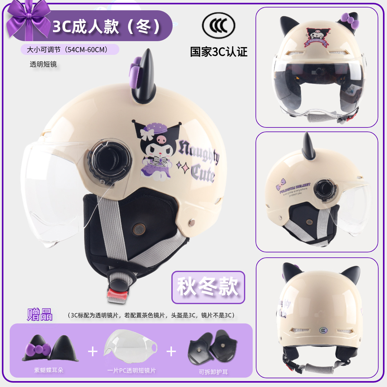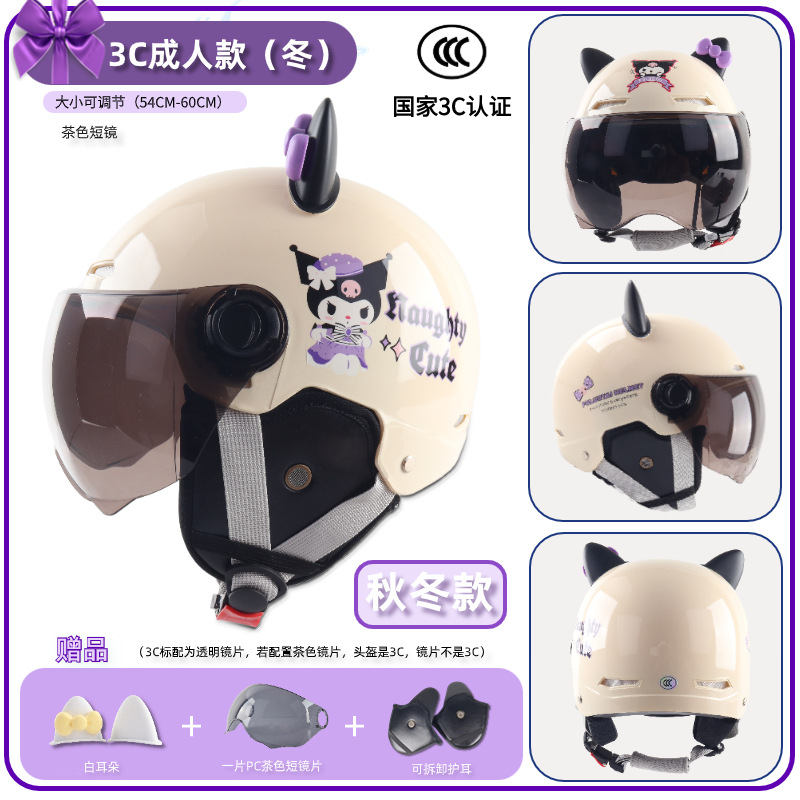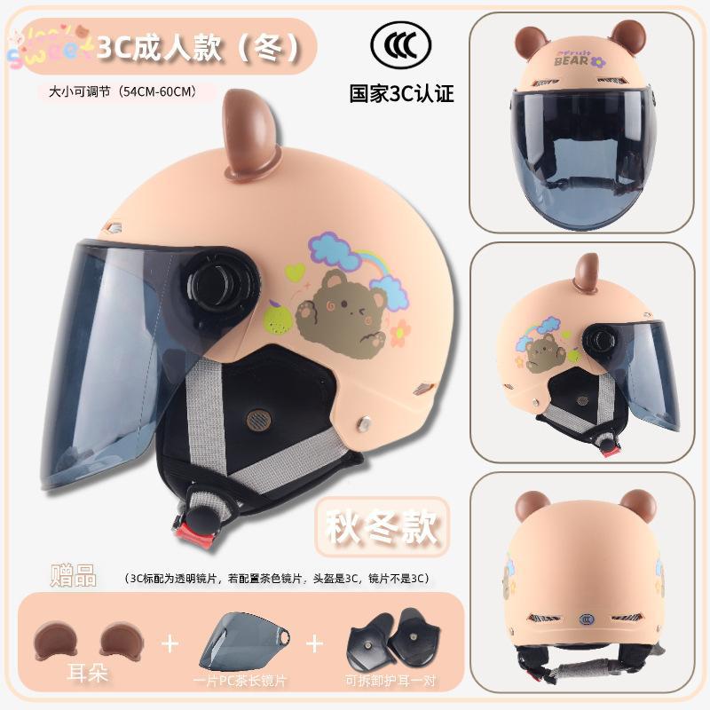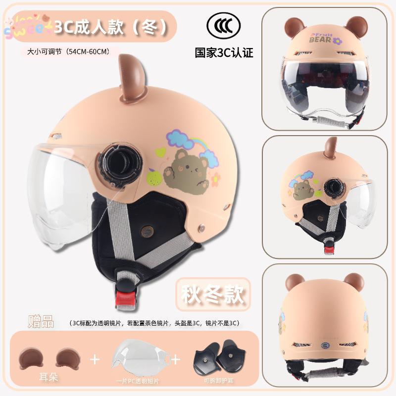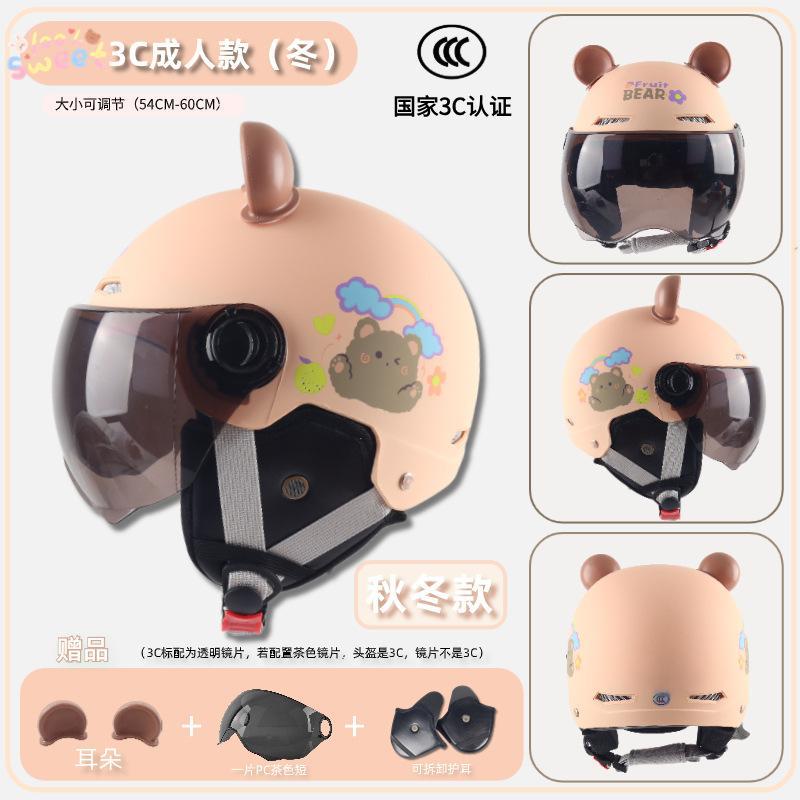 3c adult-bright beige white cool rice [winter earflaps] + transparent short mirror