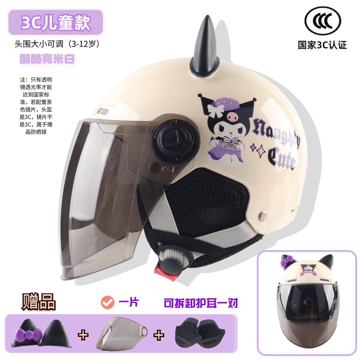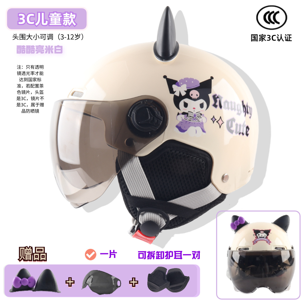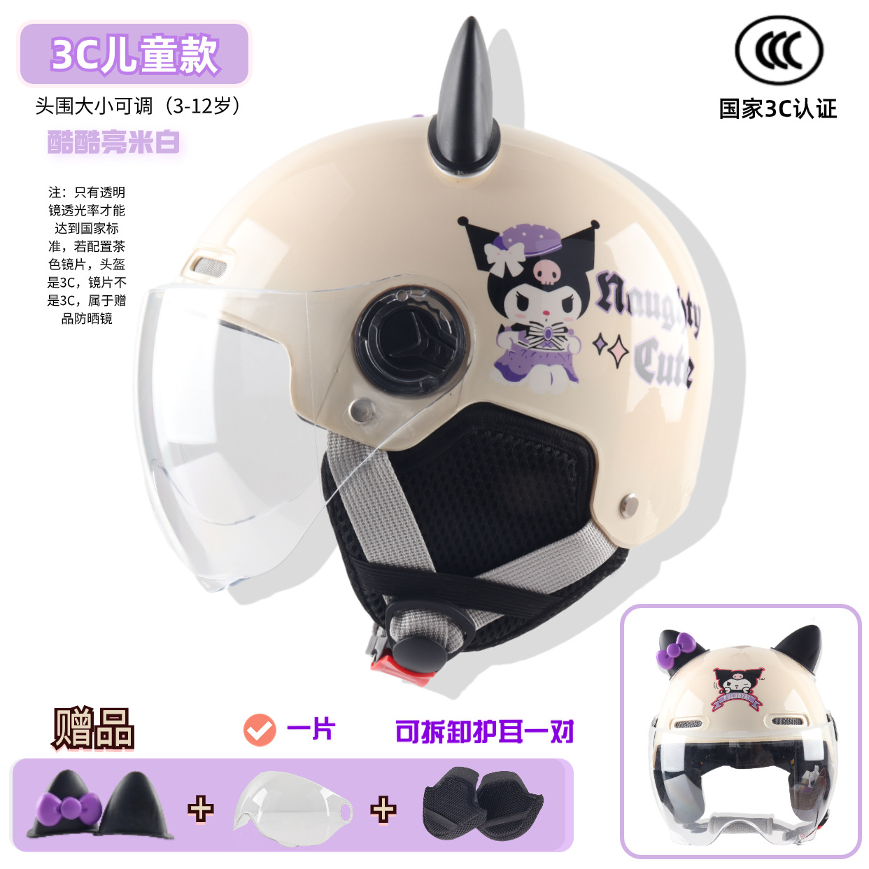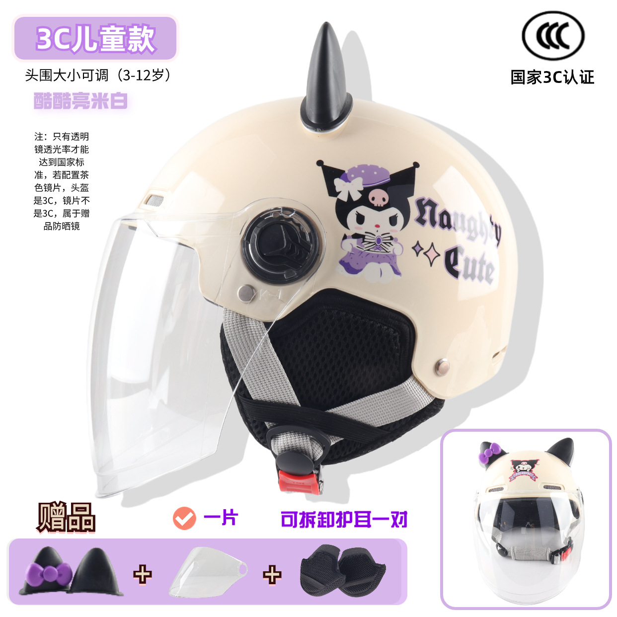 3c children -- bright beige white cool rice [winter earflaps] + transparent short mirror