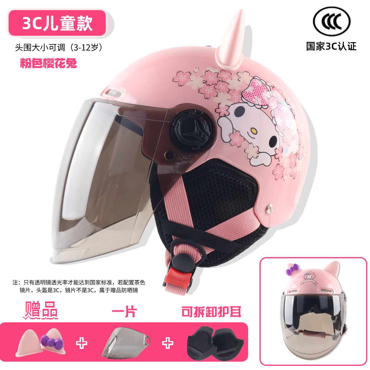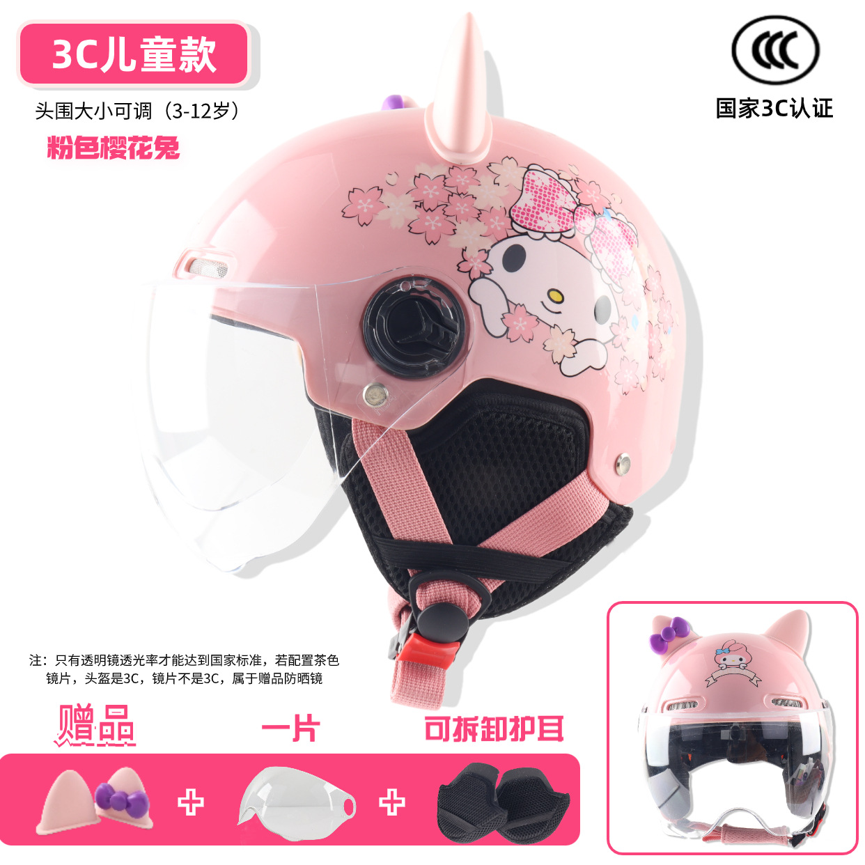 3c children -- bright cherry blossom powder [winter earflaps] + transparent short mirror