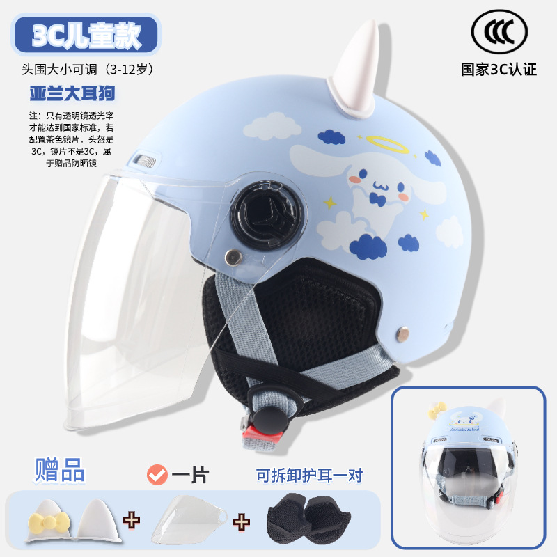 3c children-asian light blue big ear dog [winter earflaps] + transparent short mirror