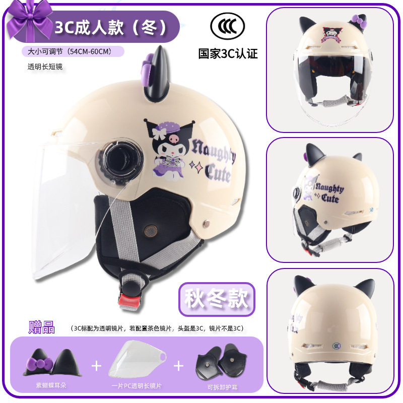 3c adult-bright beige white cool rice [winter earflaps] + transparent long mirror