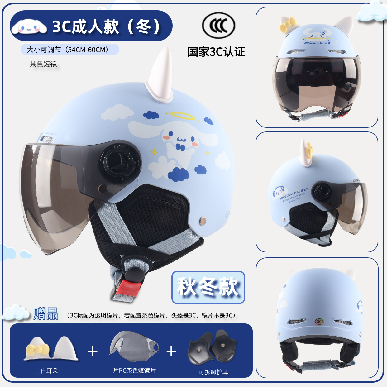 3c adult-asian light blue big ear dog [winter earflaps] + brown short mirror