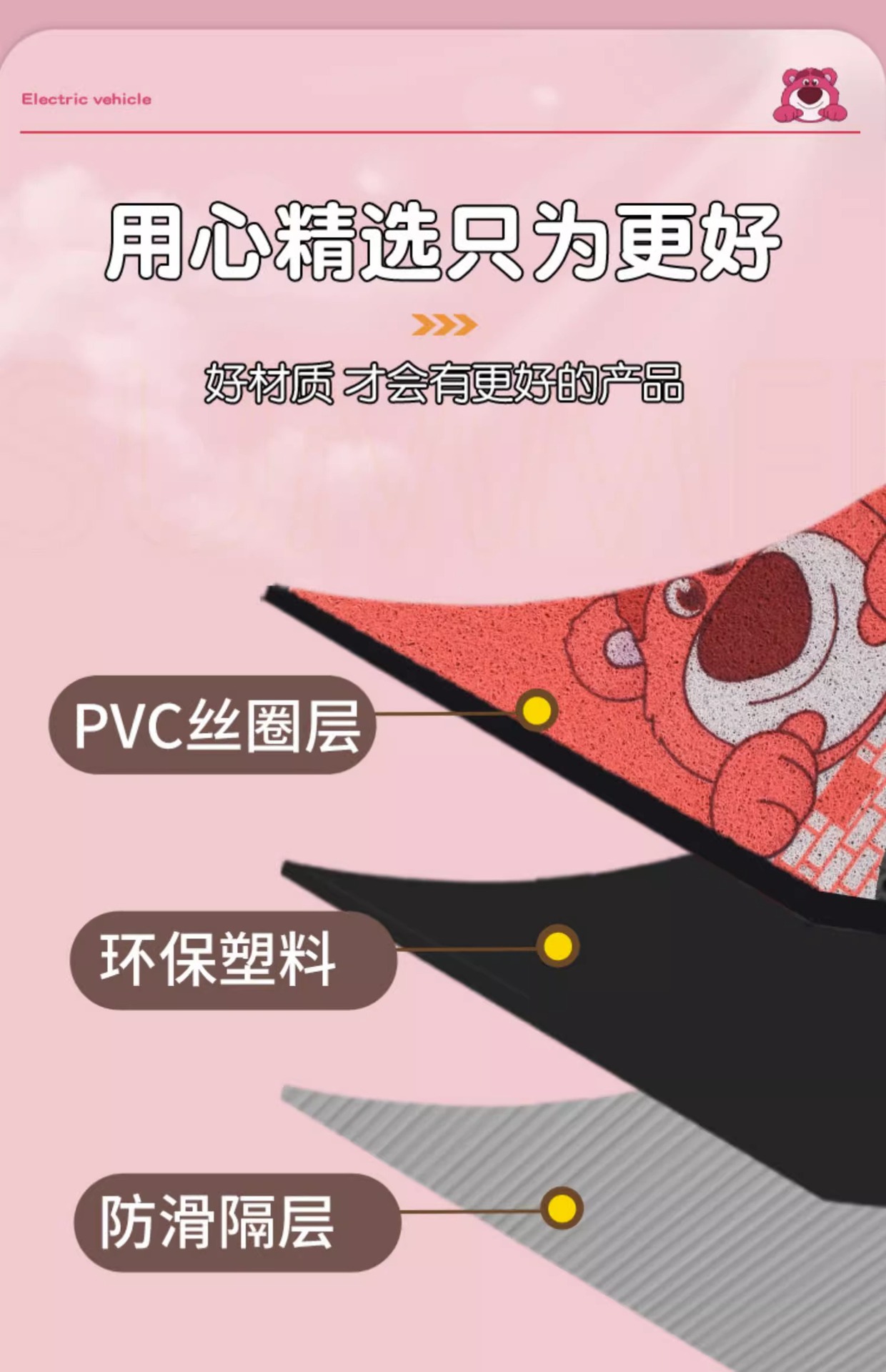 yadi q9 dedicated floor mat-strawberry bear-rose red [high quality wire ring waterproof and dustproof]]