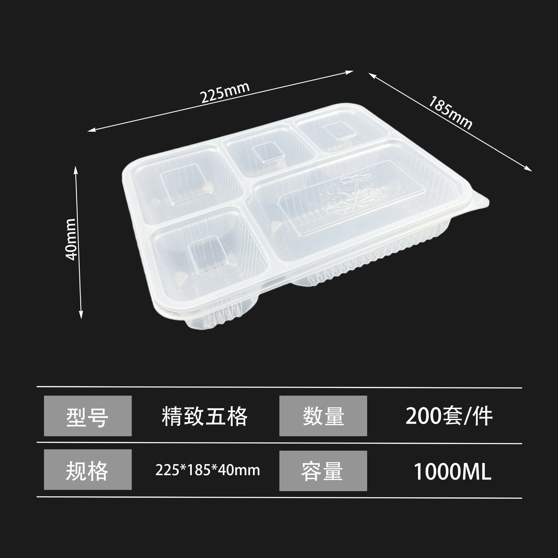 exquisite five-grid black (200 pieces/set)
