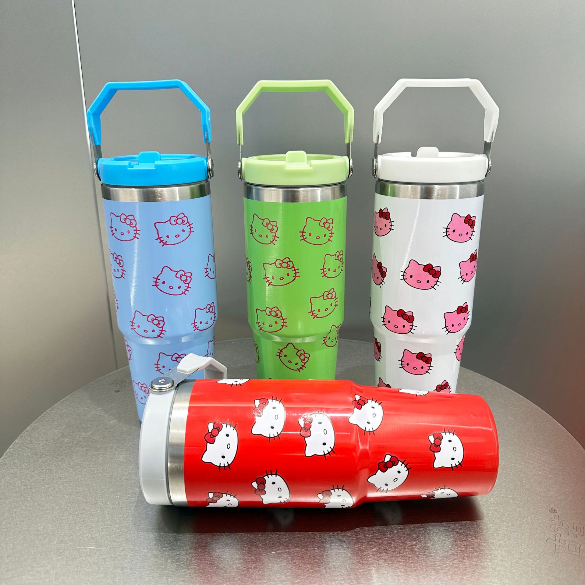 new 304 stainless steel 30oz thermos cup with handle cartoon hello kitty large ice cup car outdoor cup log