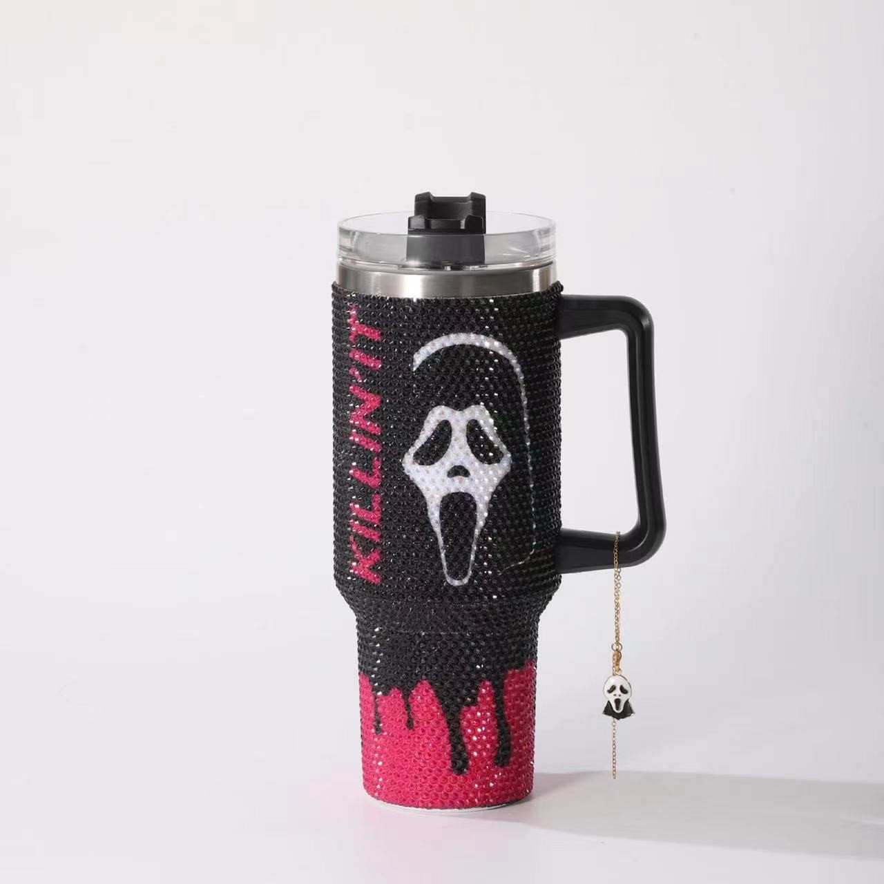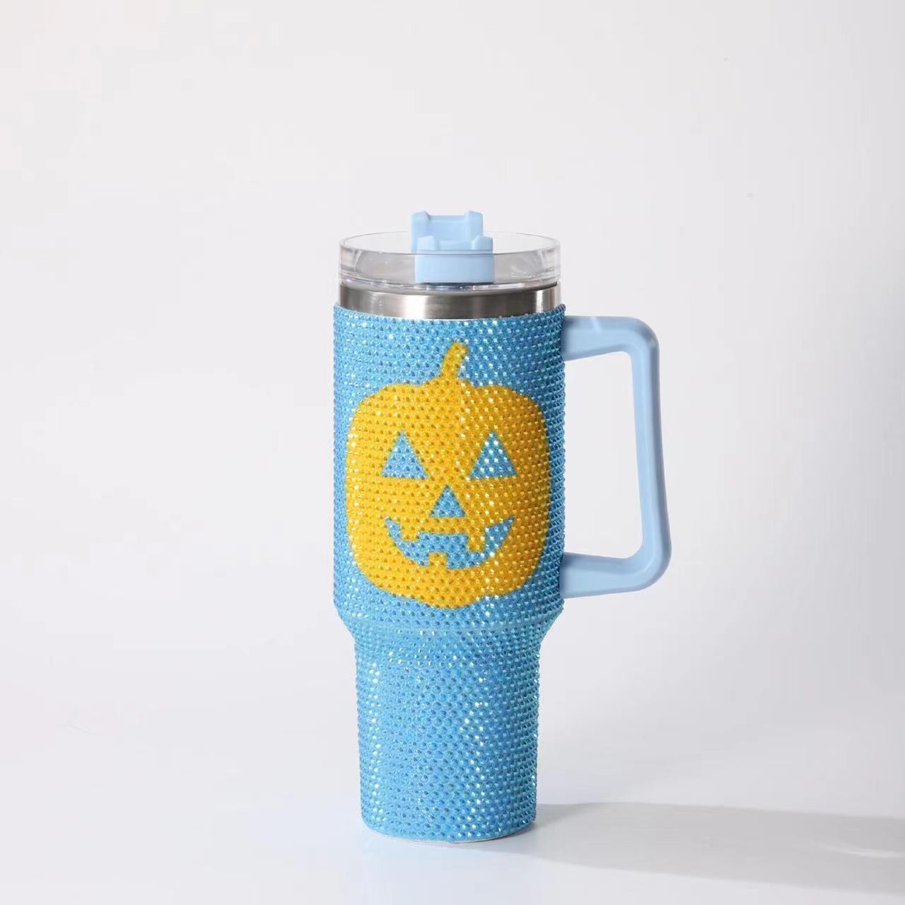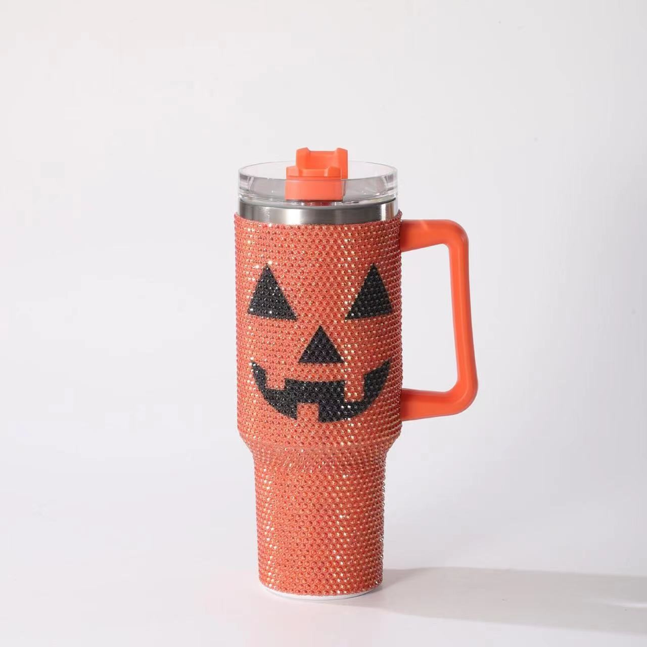 halloween pumpkin vacuum cup 40oz large capacity stainless steel cup with straw diamond-embedded car with handle large ice cup