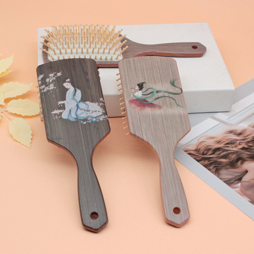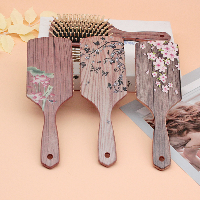 factory direct sales wood grain plastic hairbrush head massage comb household portable airbag comb wholesale round brush cartoon 中文版