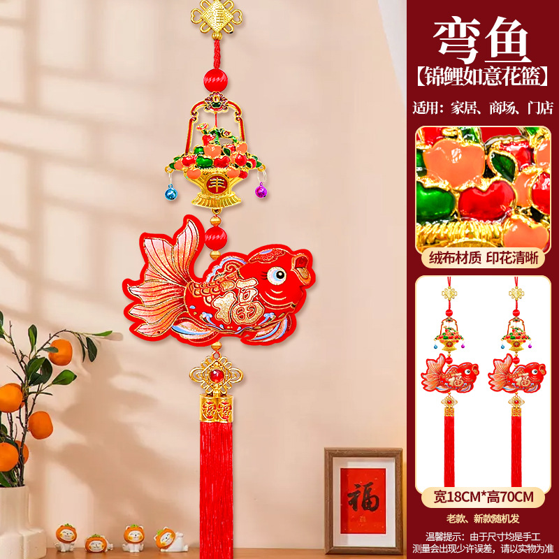 curved fish ruyi flower basket pendant
