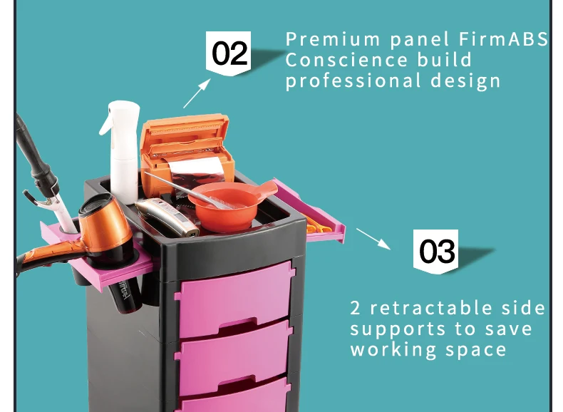 Fenghe T0165 Four Smooth-Rolling Swivel Casters Modern Pink Salon Trolley SPA Beauty Hairdressing Cart