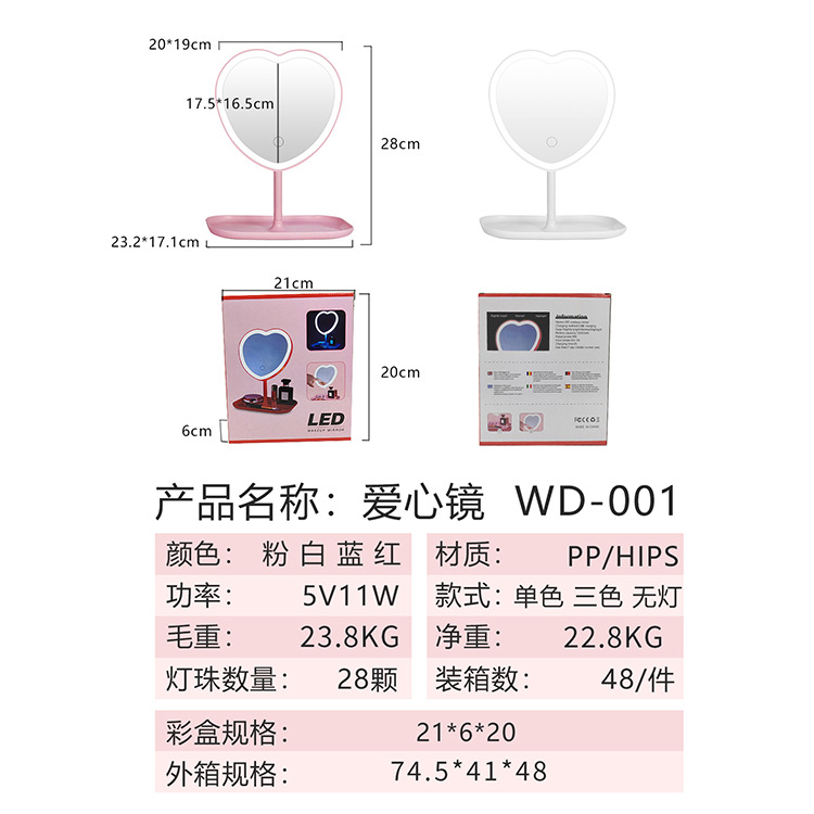 three-color makeup mirror factory direct supply douyin online influencer led with light student female fill light dormitory desktop table mirror