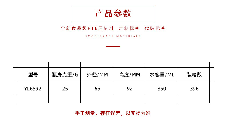 | 350ml plastic lid flat drum bottle; yx6592-25g | CN¥ 0.96 | 999998 piece available |