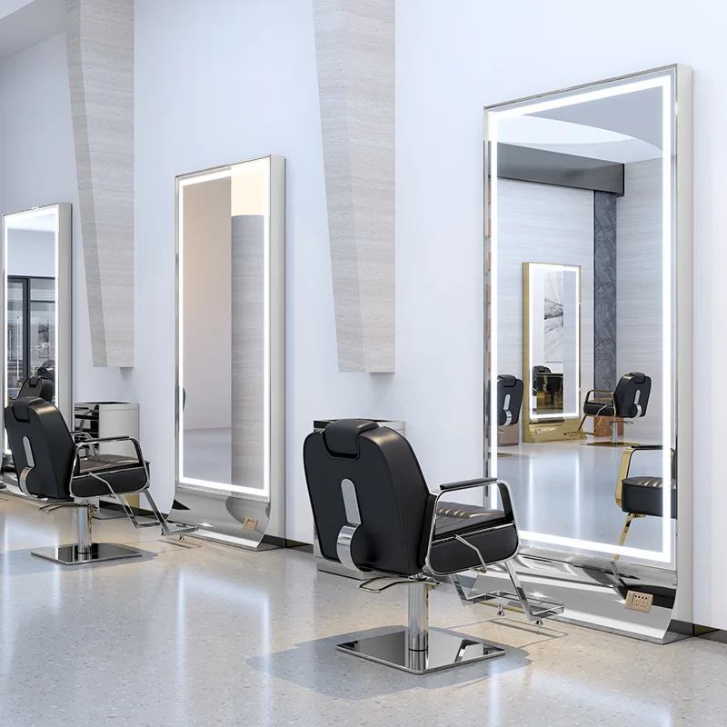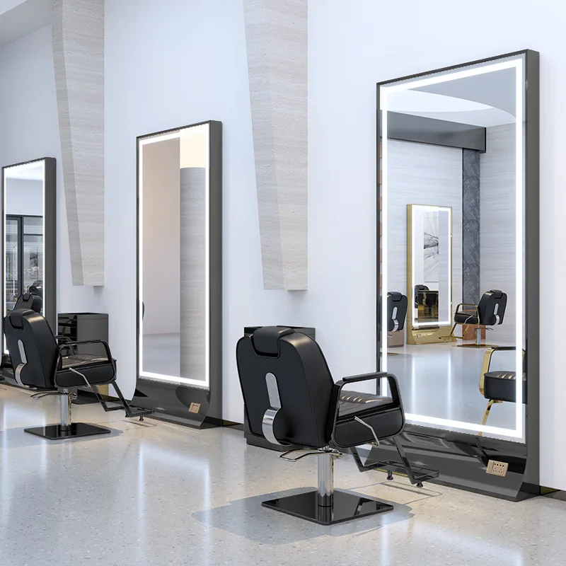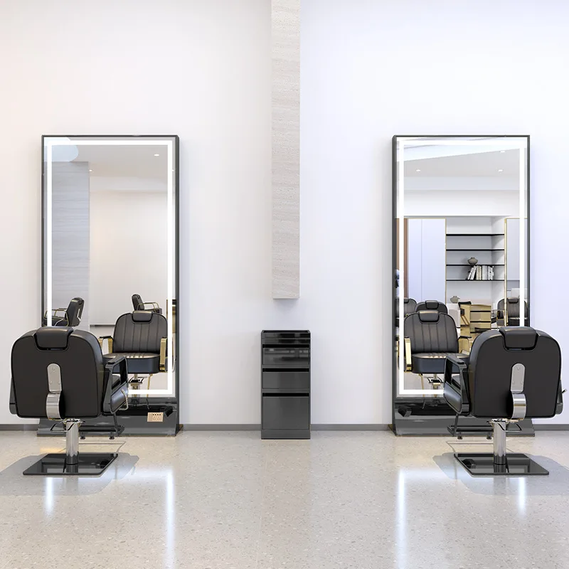 Luxury Hair Salon Furniture Barber Cabinet Station Salon Mirror With Led Light