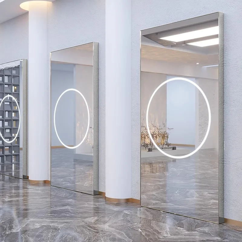 Professional beauty salon mirror table lighting design a set of salon furniture with round mirror barber chair