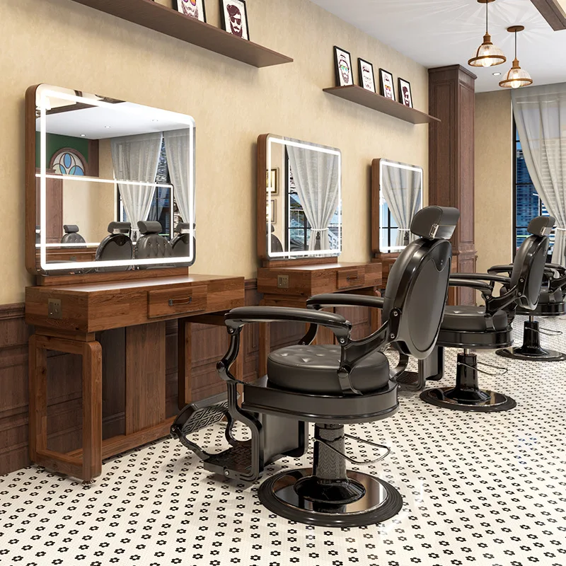 New personalized retro hair salon, mirror stand, hair salon, hair cutting mirror, solid wood