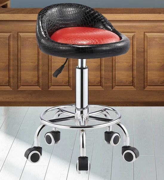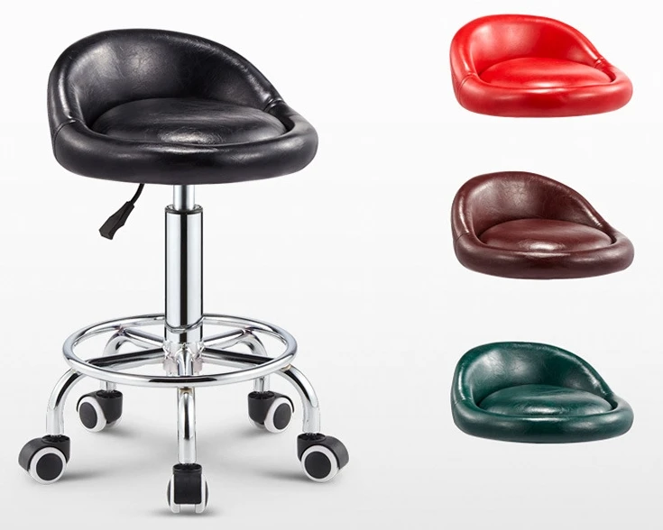 0Height Adjustable Rolling Salon Stool Chair with Backrest Wheels for Massage Facial Spa Manicure