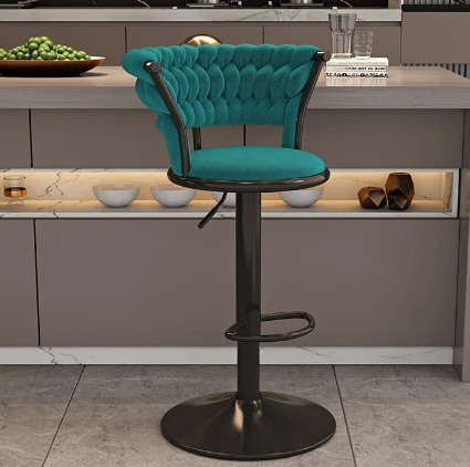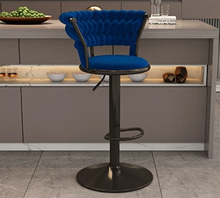 Blue Velvet Restaurant Bar Chair Metal Cover High Bar Stool Modern Nave Dining Chair Dining Room Furniture stool chair