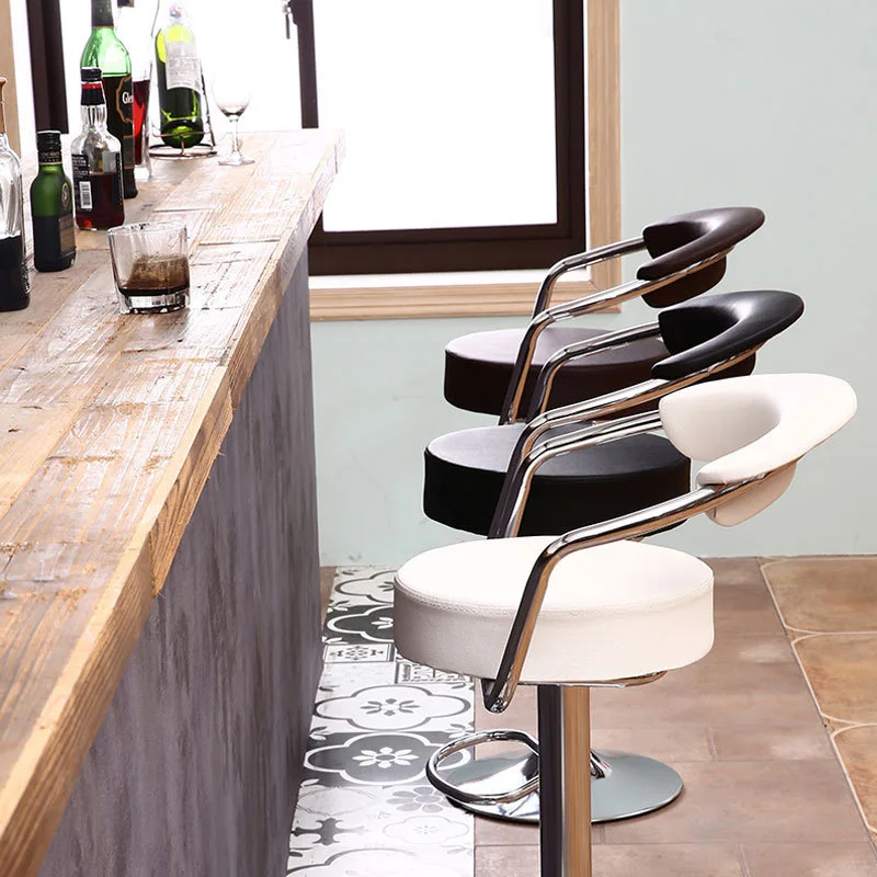 Bar Furniture Pu Backrest Swivel Bar Stool Circular Lifting Bar Stools Cafe Restaurant High Chair