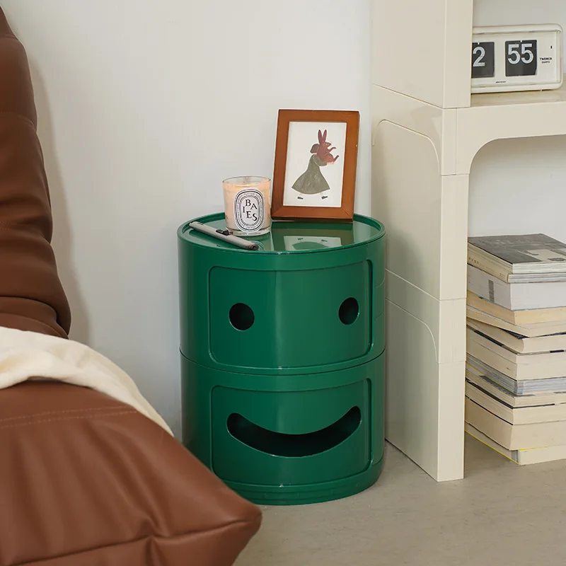 Nordic Smiling Face Circular Plastic Coffee Table Creative Storage for Living Room Bedroom Small Round Nightstands Furniture