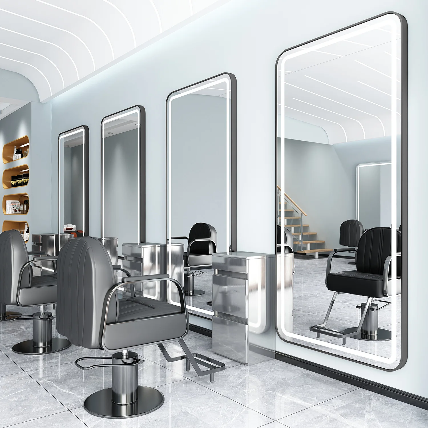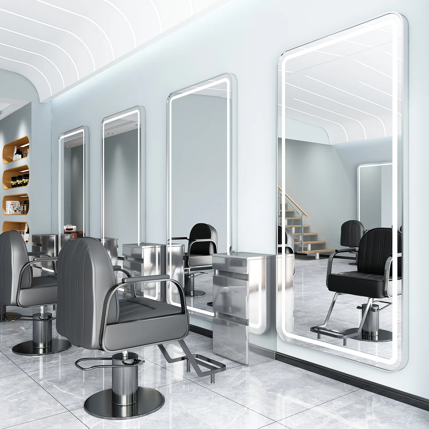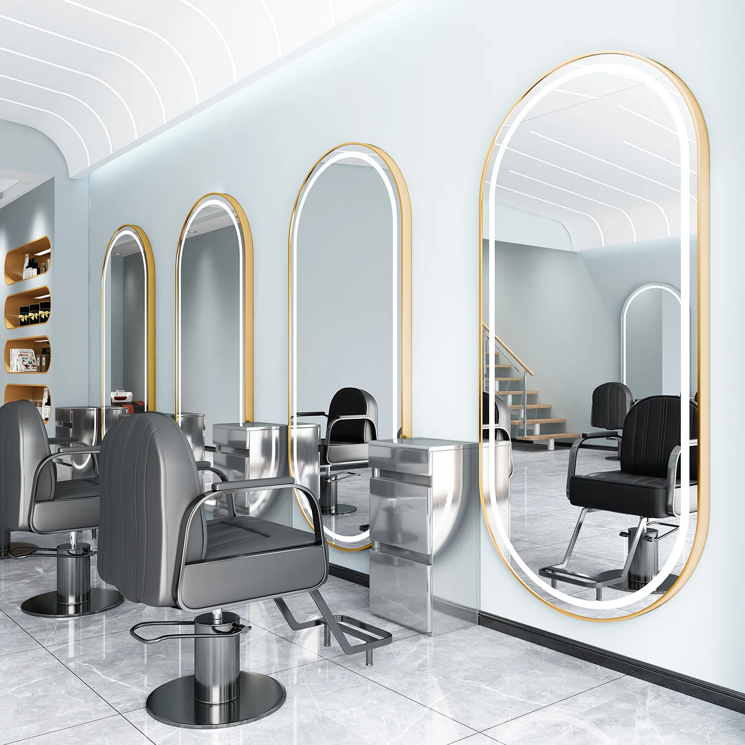 Custom design of modern light luxury three-color light source LED mirror oval square mirror hair salon furniture set