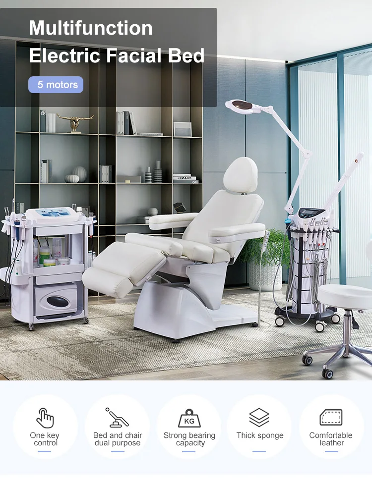 New Modern Model hospital 5 motors facial massage extendable footrest tattoos adjustable pillow Beauty Electric Salon Furniture