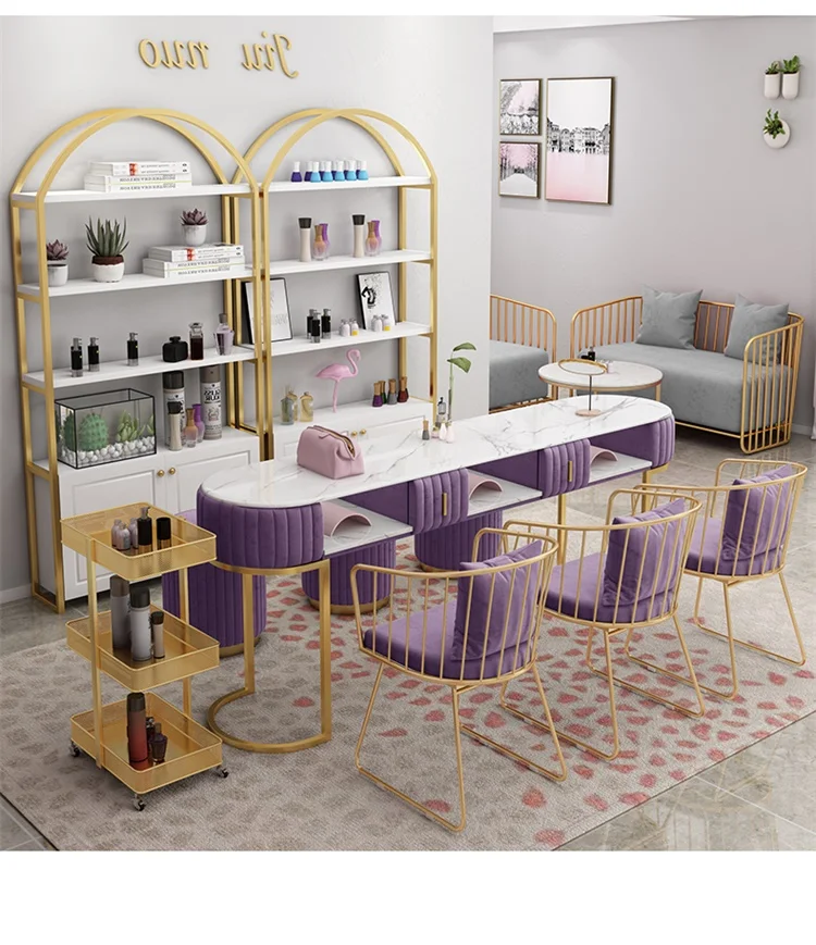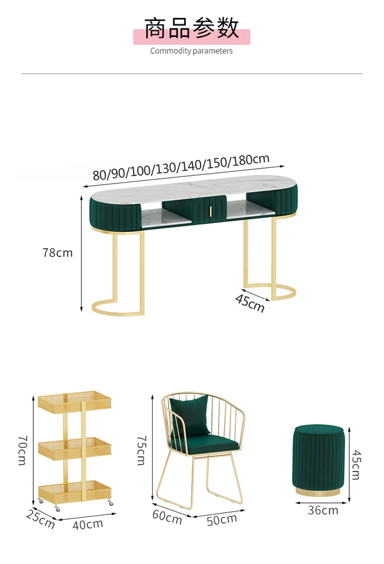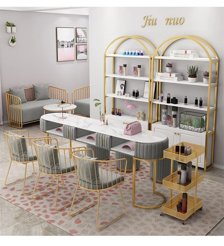 light luxury Gray pink green nail tables and chairs 80/90/100/130/140/150 / waiting for sofa salon furniture set nail table