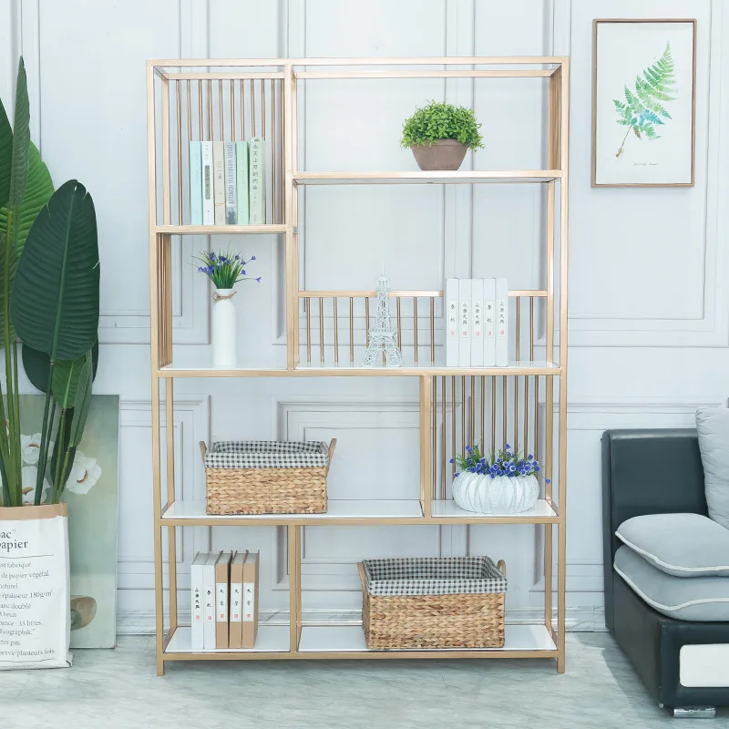 Golden Marble Iron Shelf Nordic Cafe Solid Wood Shelf Display Shelf Home Bookshelf wire shelving Salon storage rack