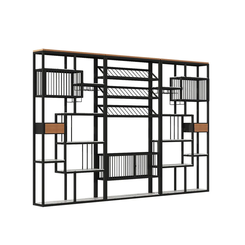 European Style Living Room Custom Wholesale Storage Library Wooden Iron Shelf With Bookcase Cabinet