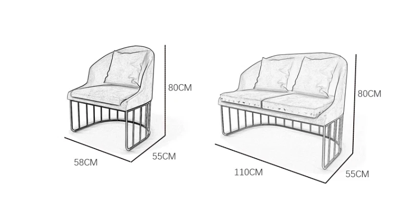 Modern Minimalist Nordic Style Fabric Sofa Metal Frame Living Room Small Sofa Coffee Table Combination