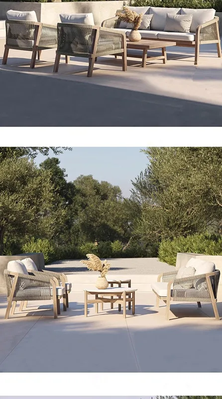 Modern and minimalist outdoor courtyard garden hotel villa leisure rattan woven solid wood sofa