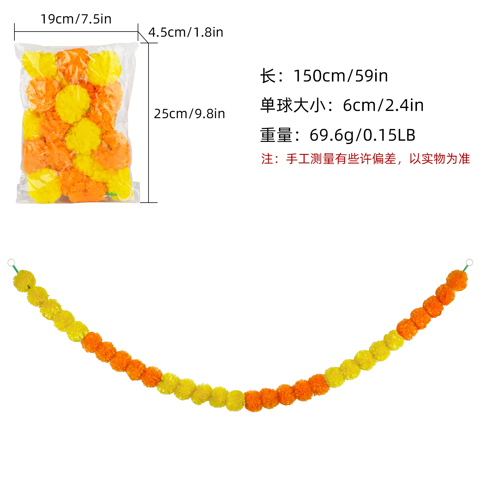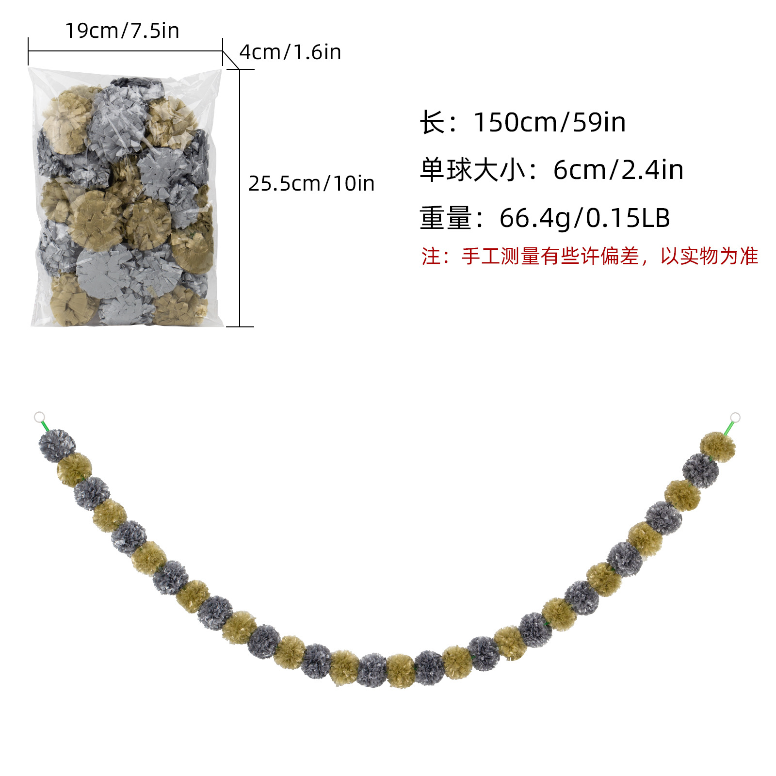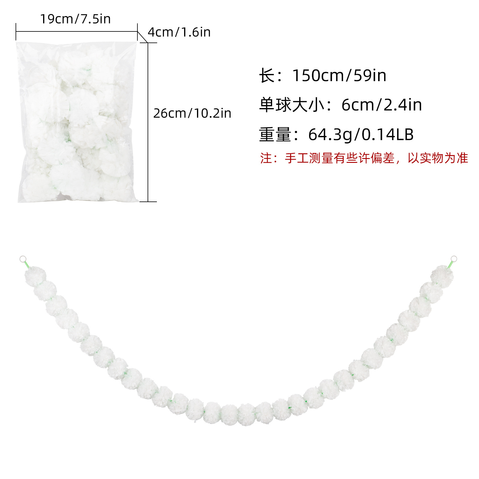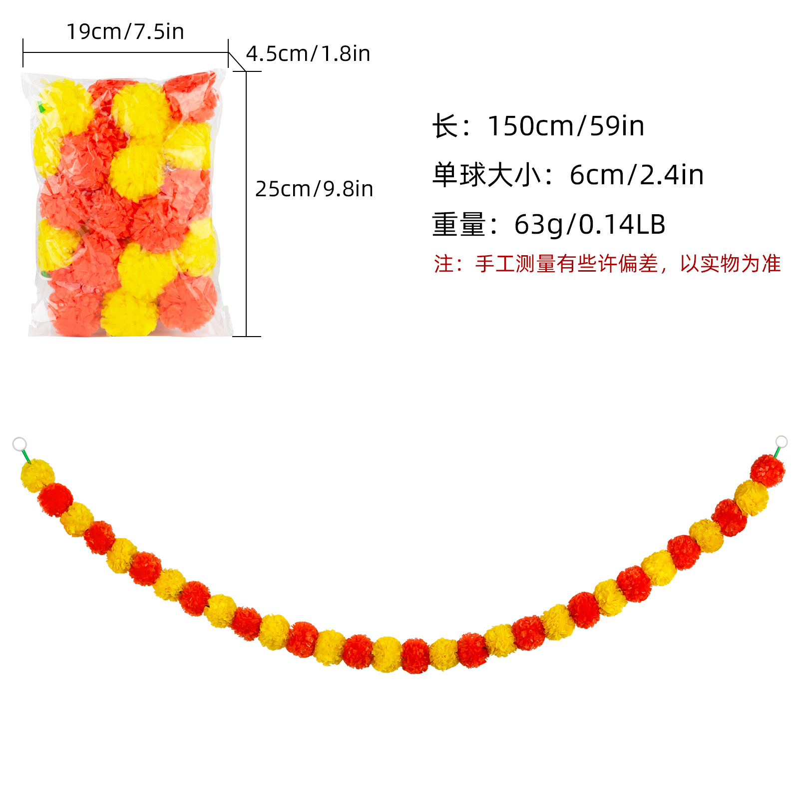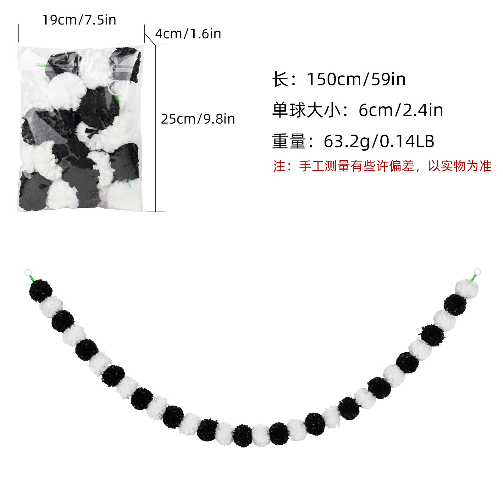 Product Size: Length 1.5 meters, 30 balls, ball diameter 6cm
