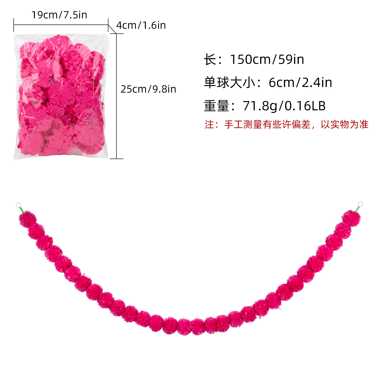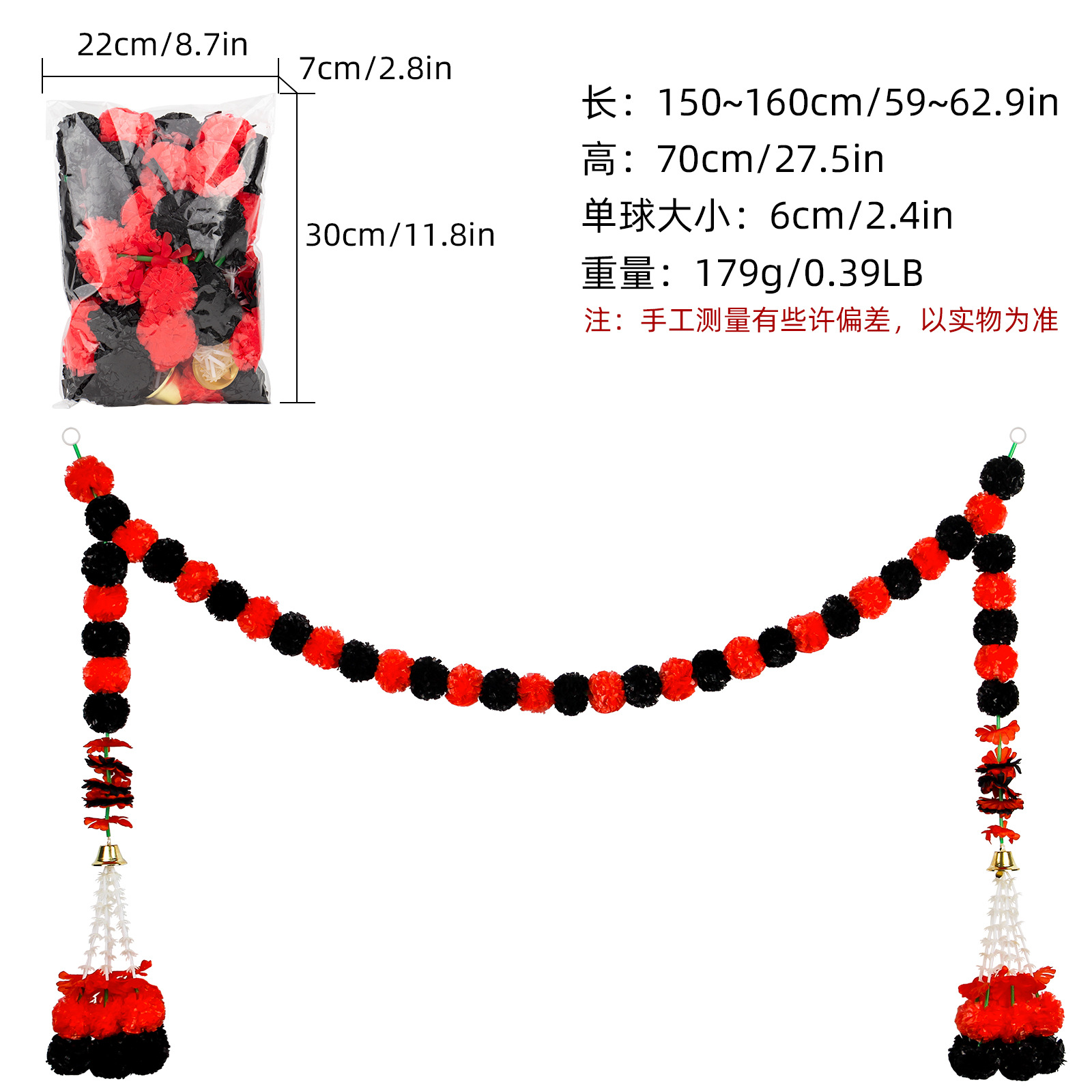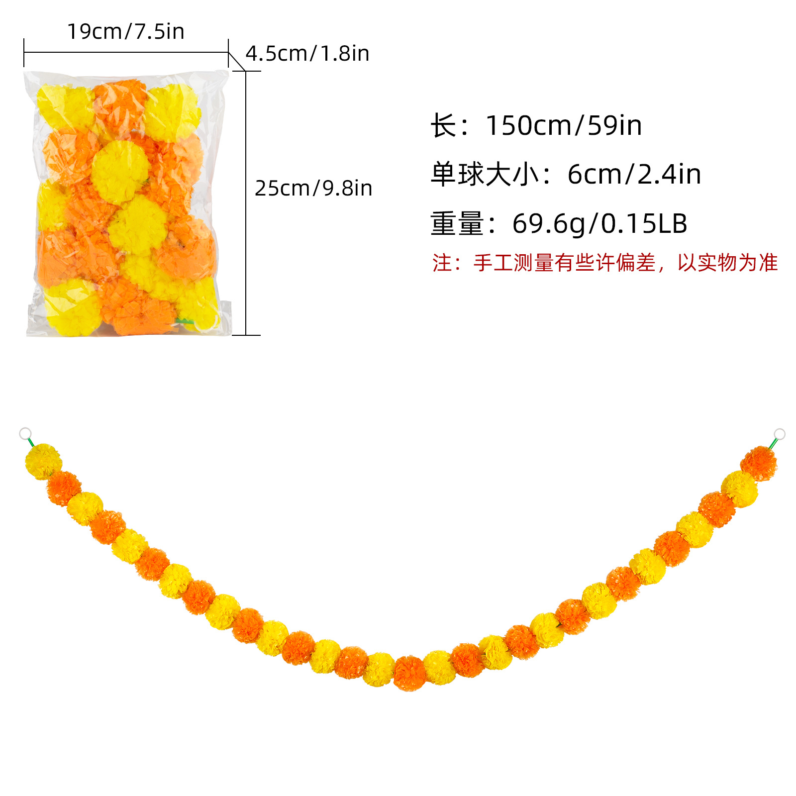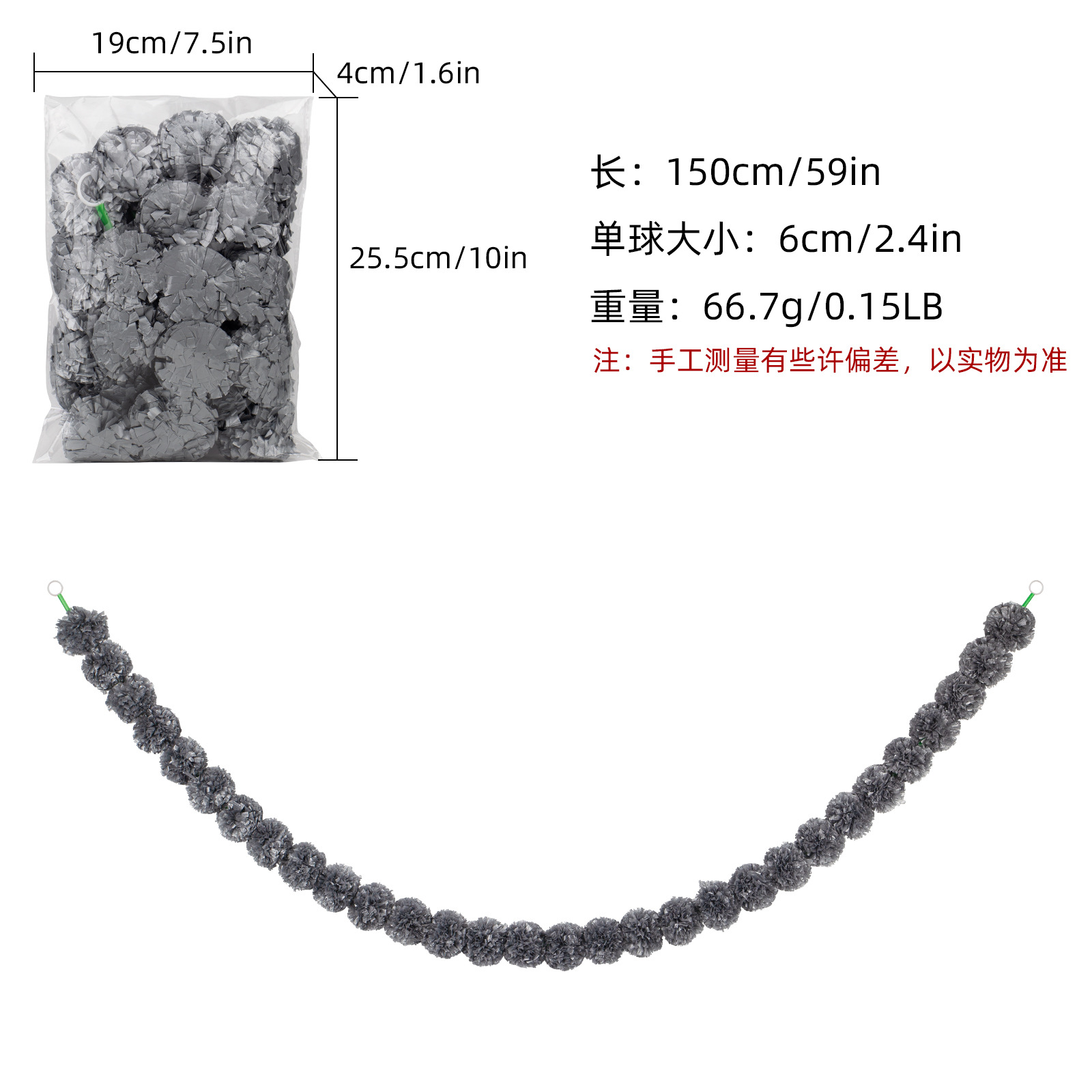 Product Size: Length 1.5 meters, 30 balls, ball diameter 6cm