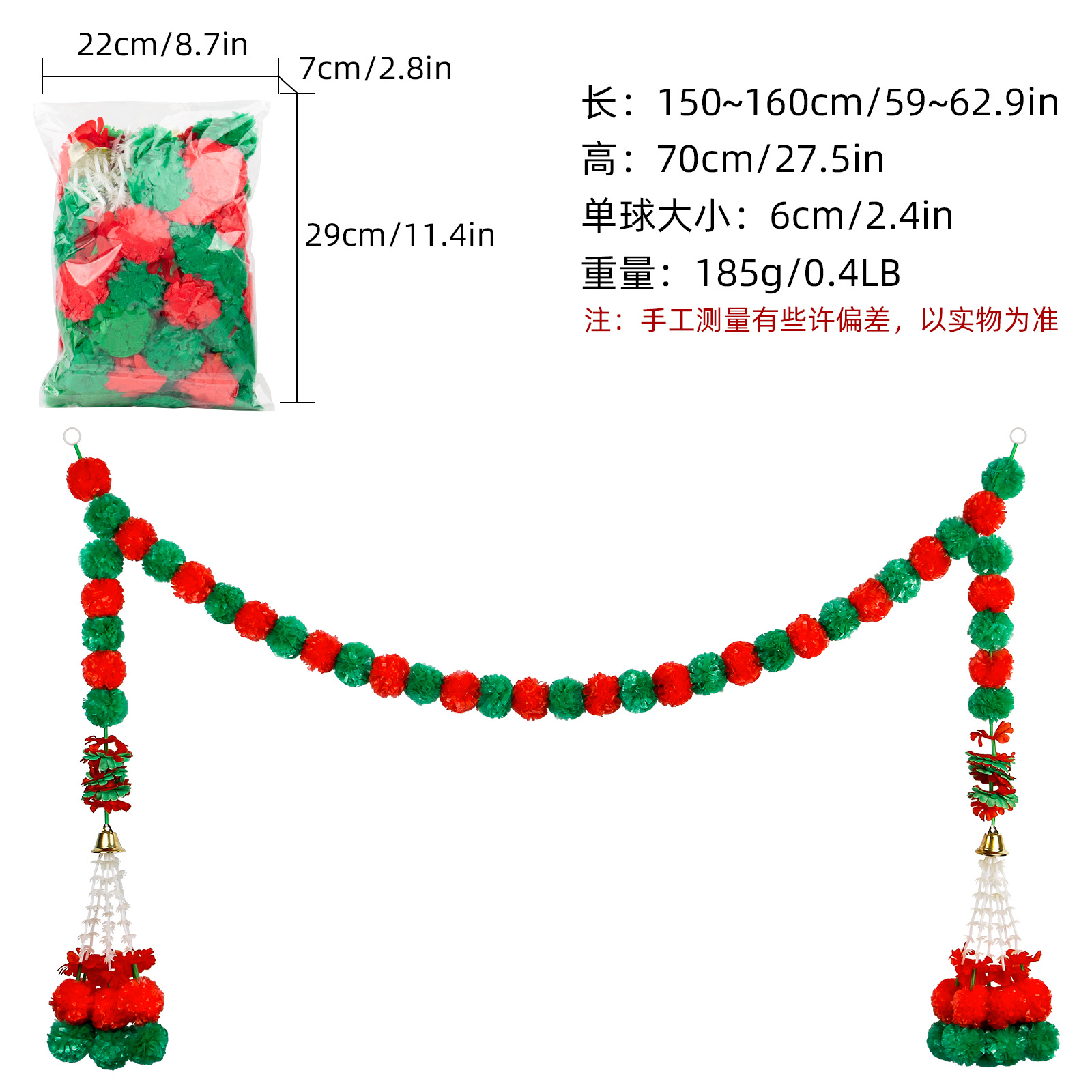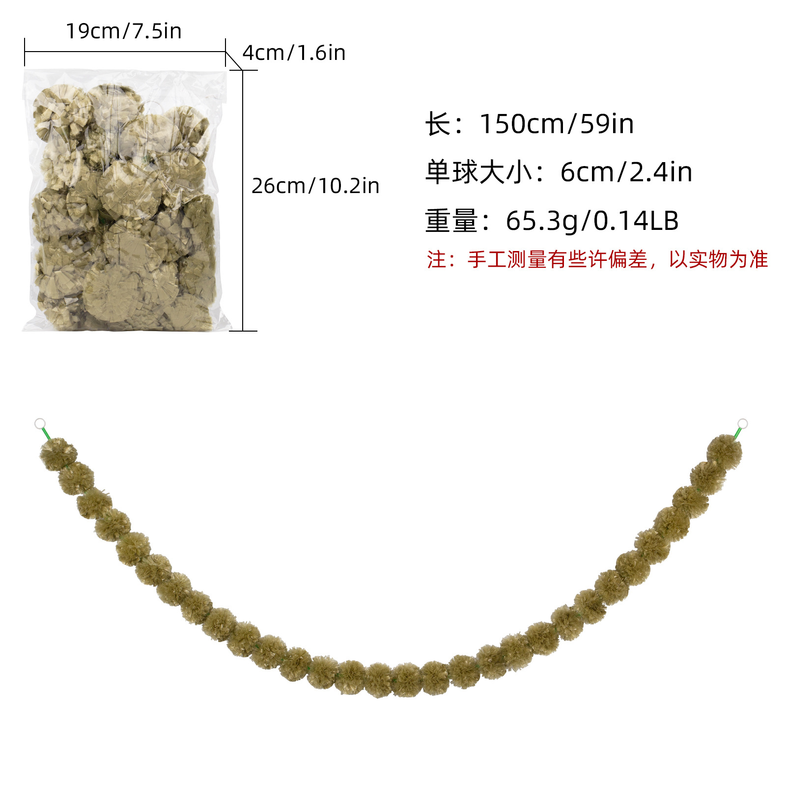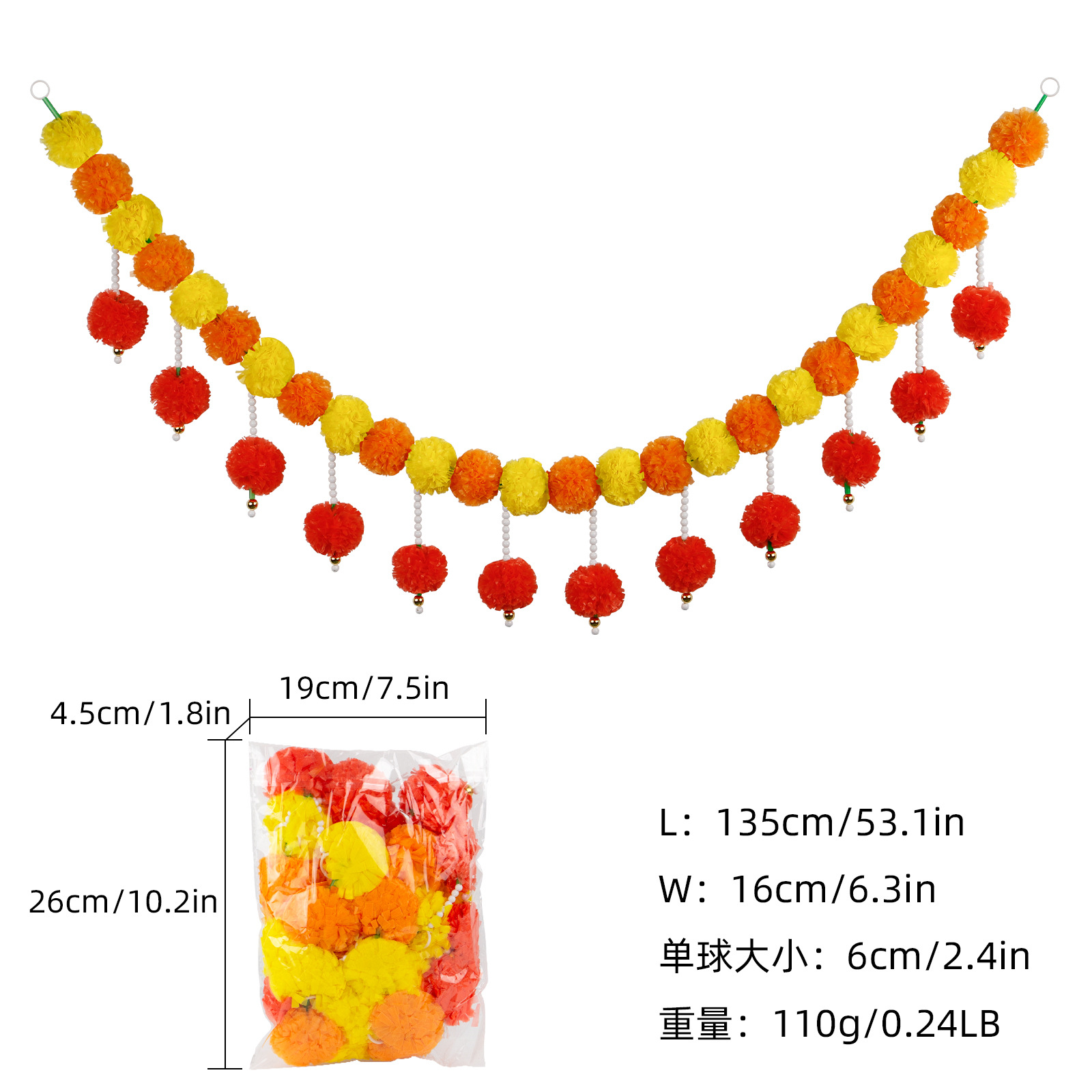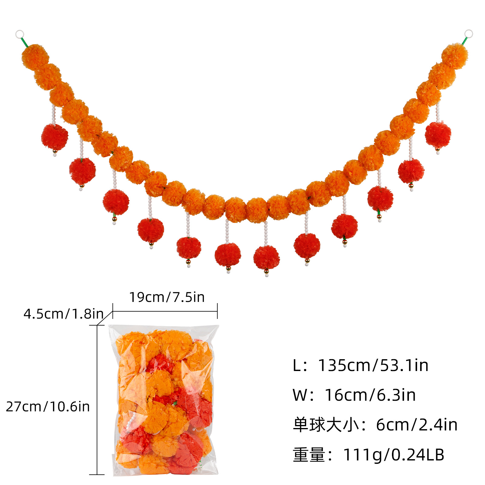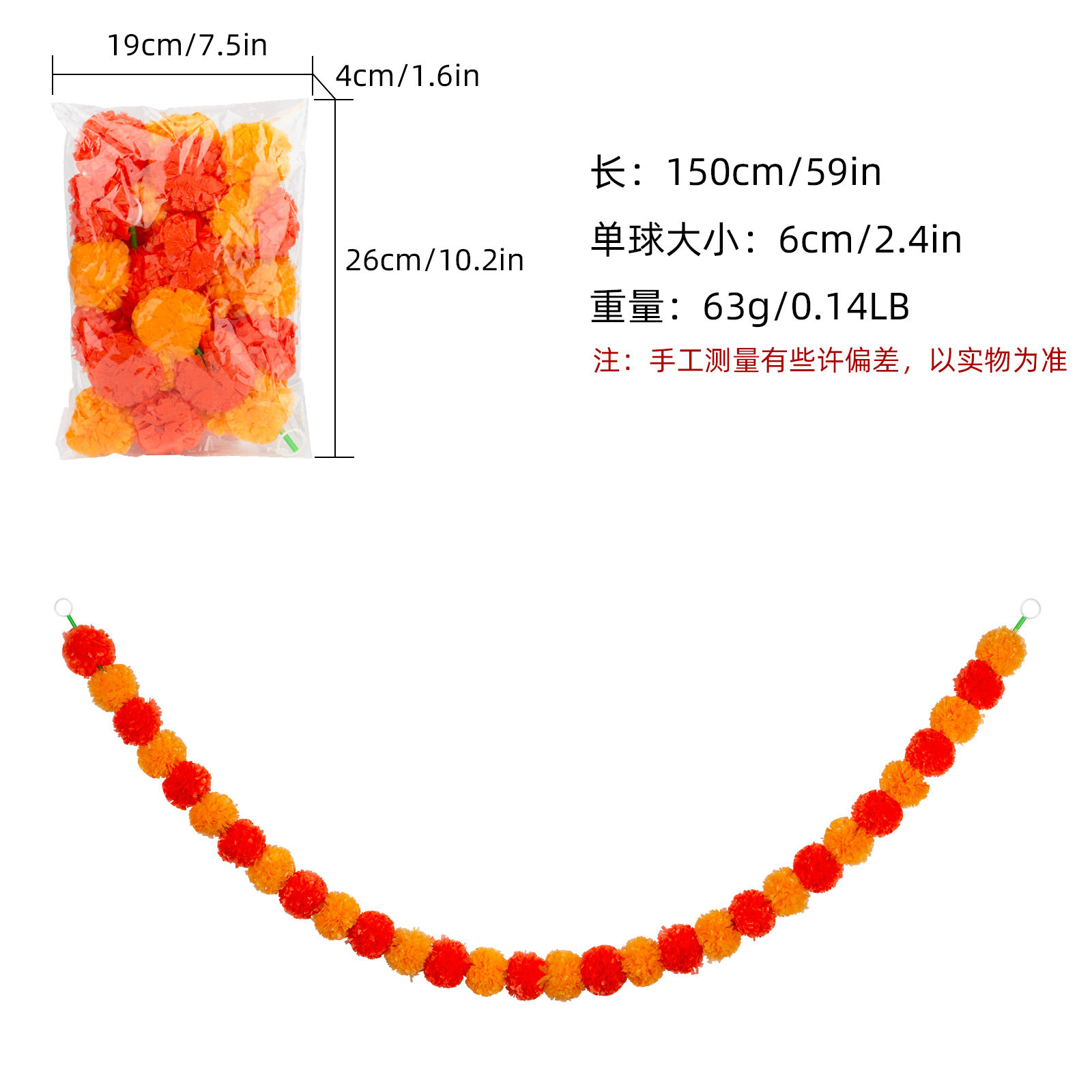 Product Size: Length 1.5 meters, 30 balls, ball diameter 6cm