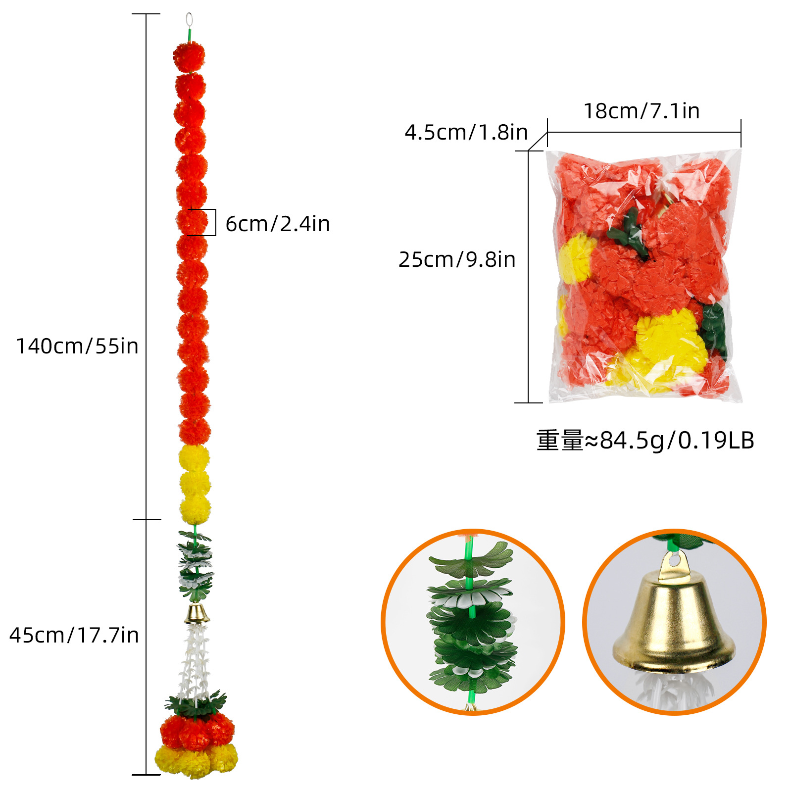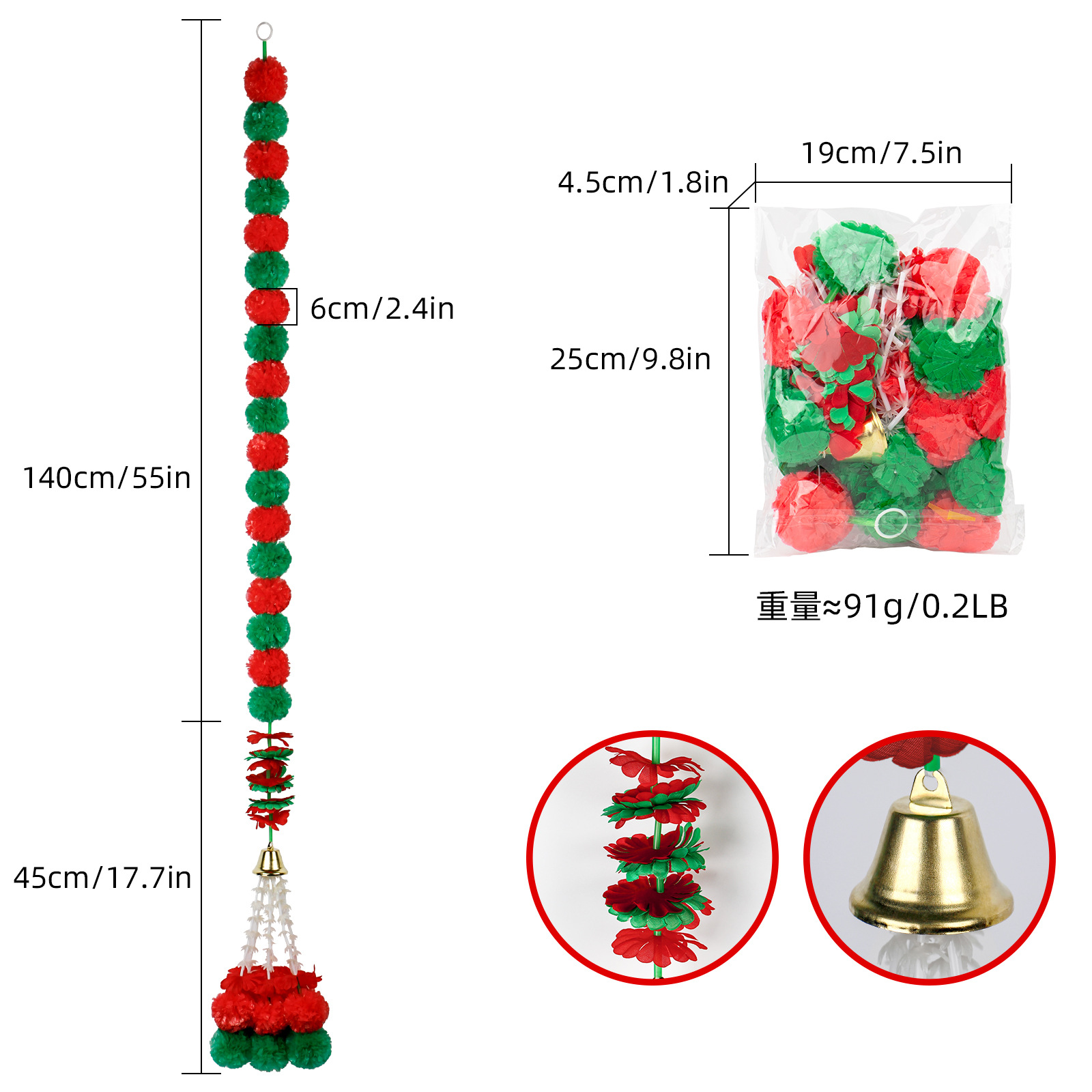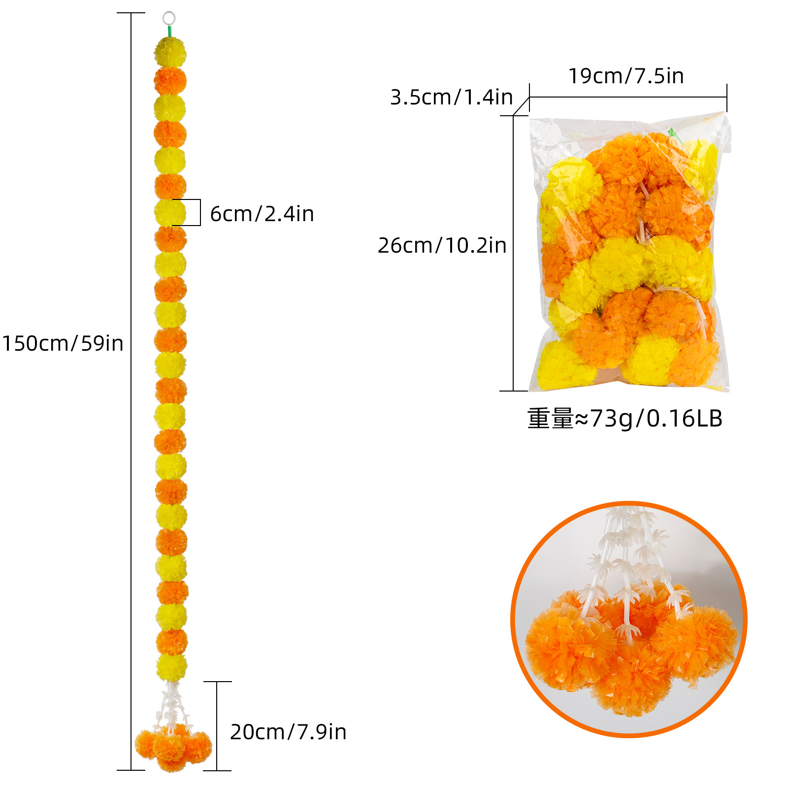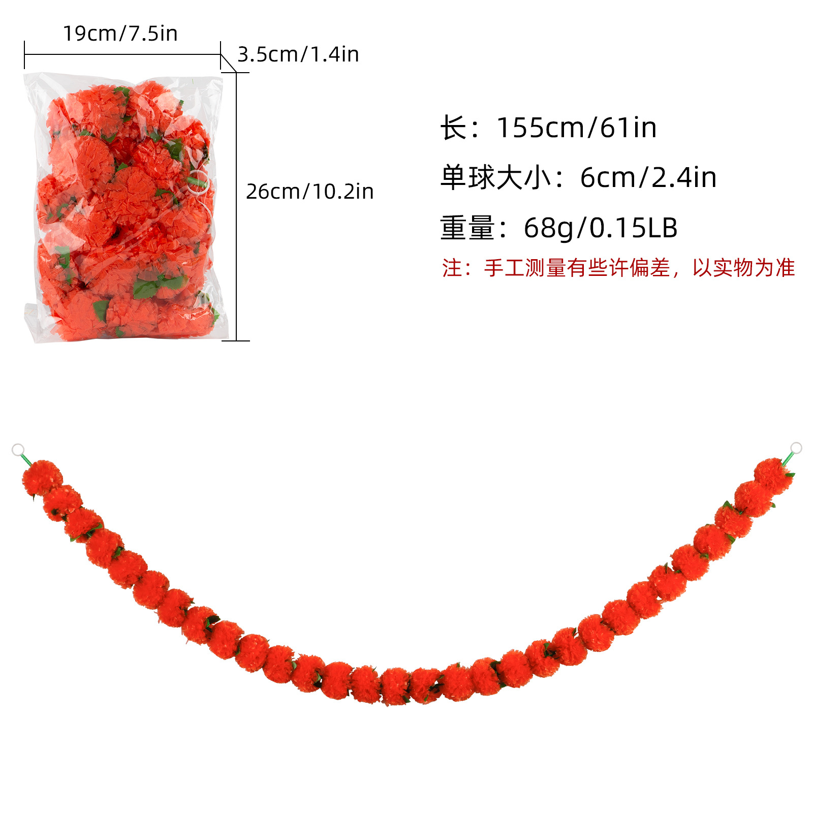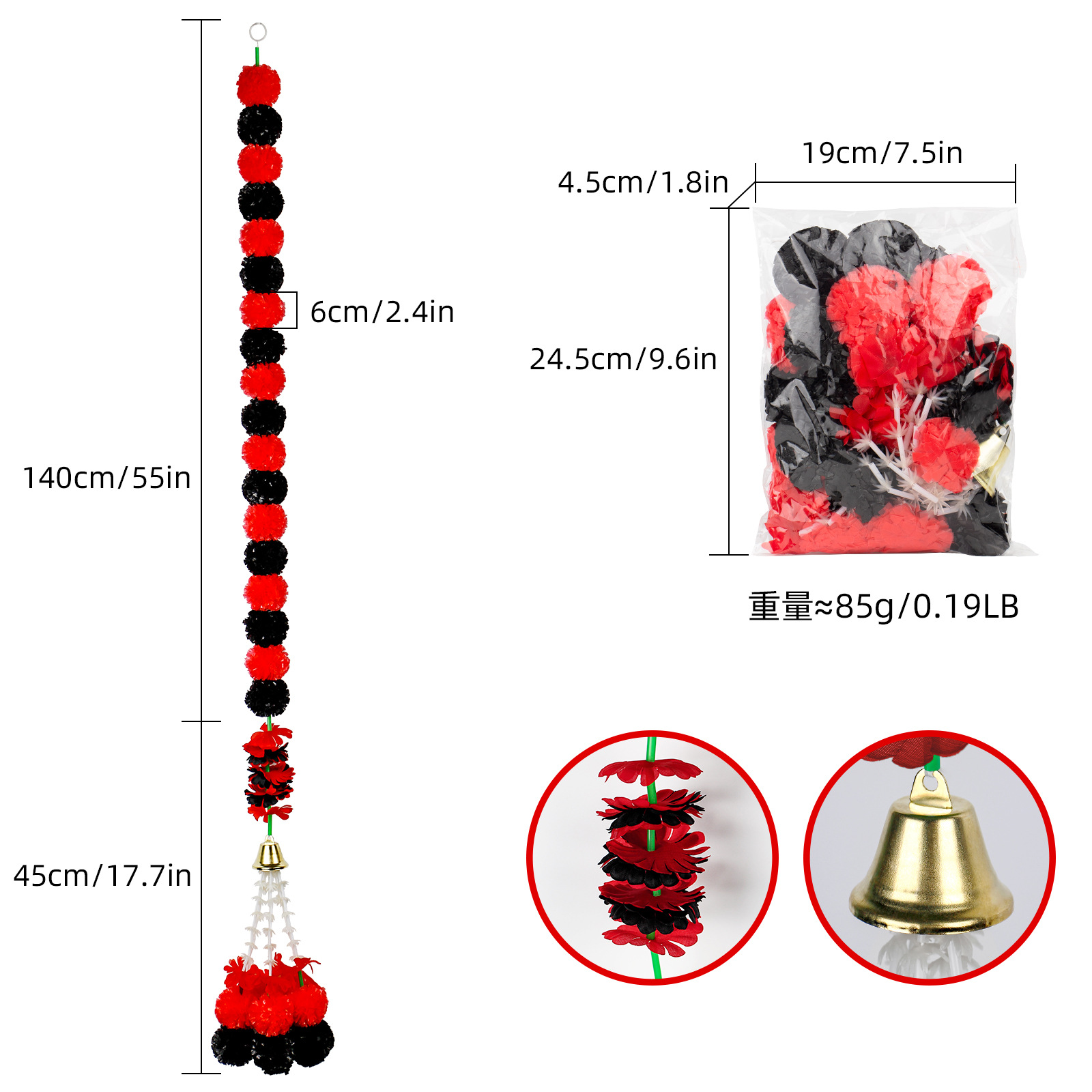 Product Size: Length 1.5 meters, 30 balls, ball diameter 6cm