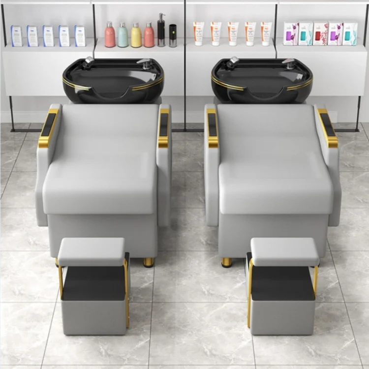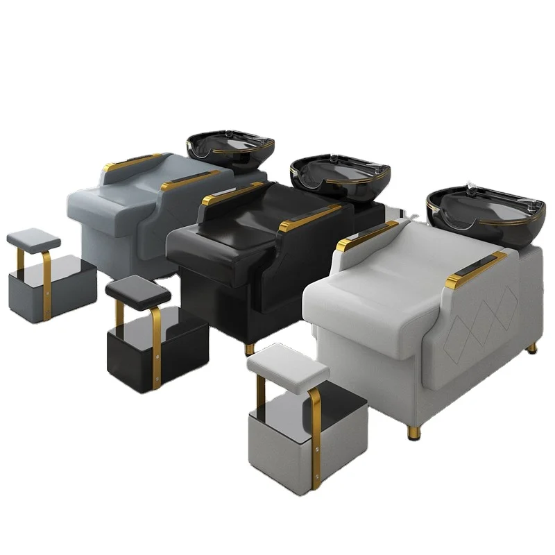 Modern light luxury barbershop shampoo bed salon furniture ceramic basin shampoo sofa bed