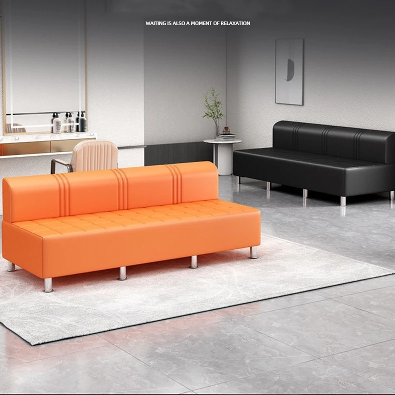 2024 Modern light luxury black leather waiting sofa Barbershop beauty salon waiting chair