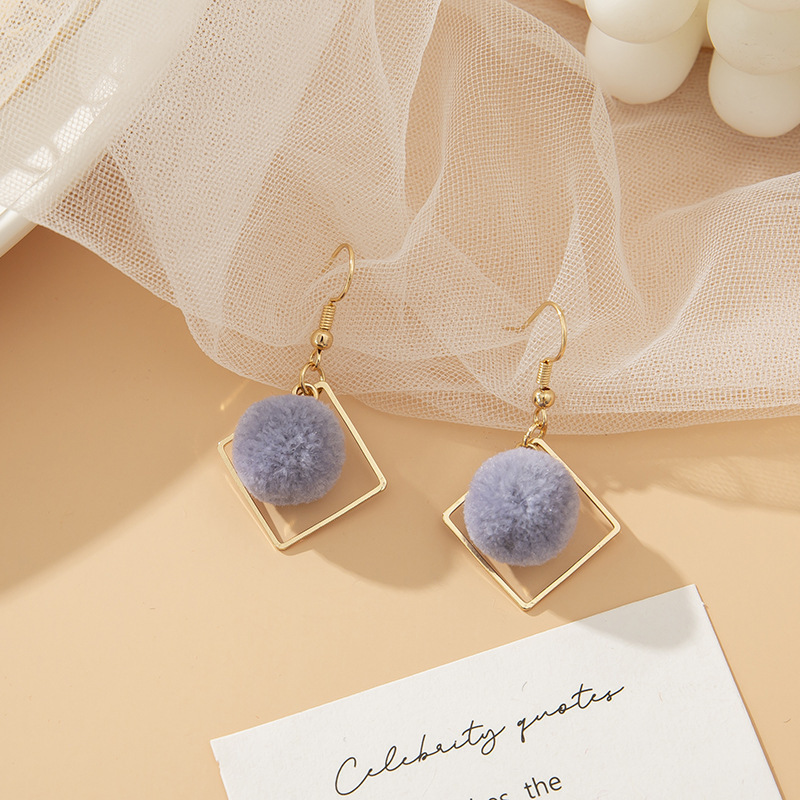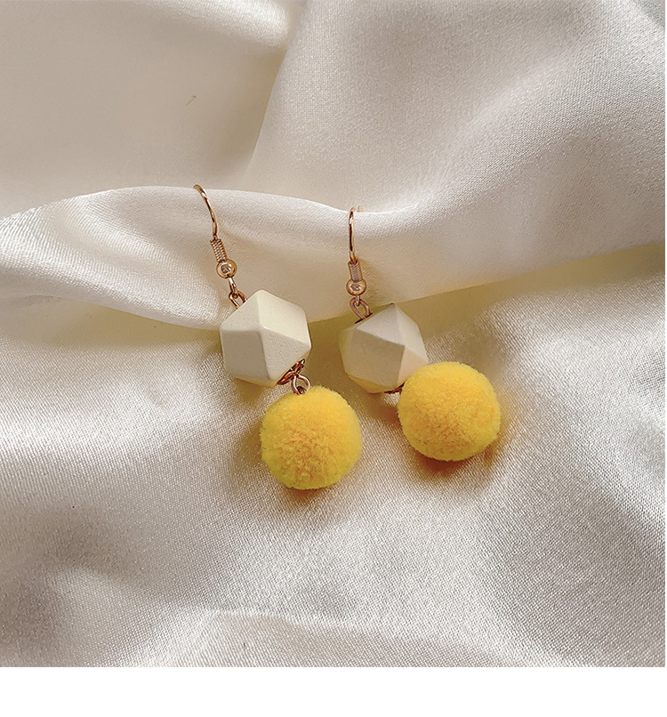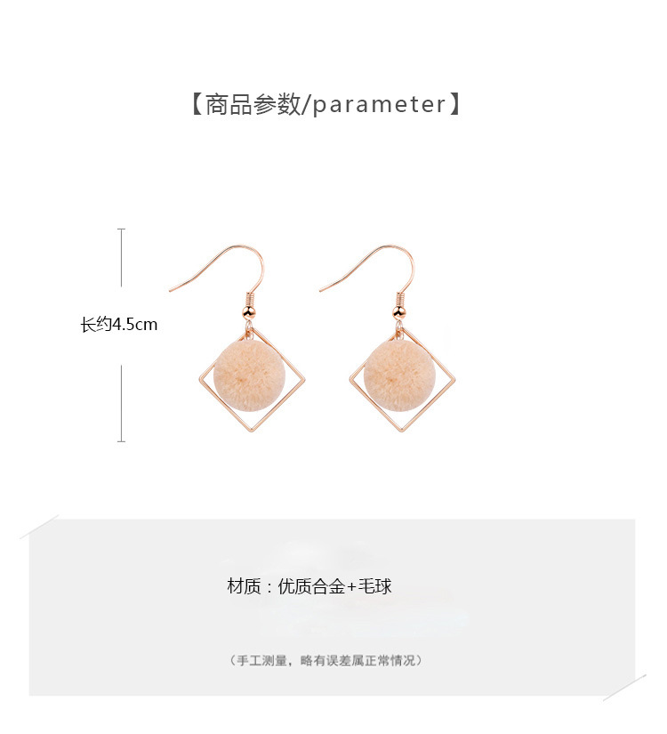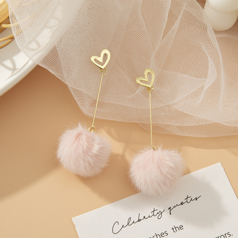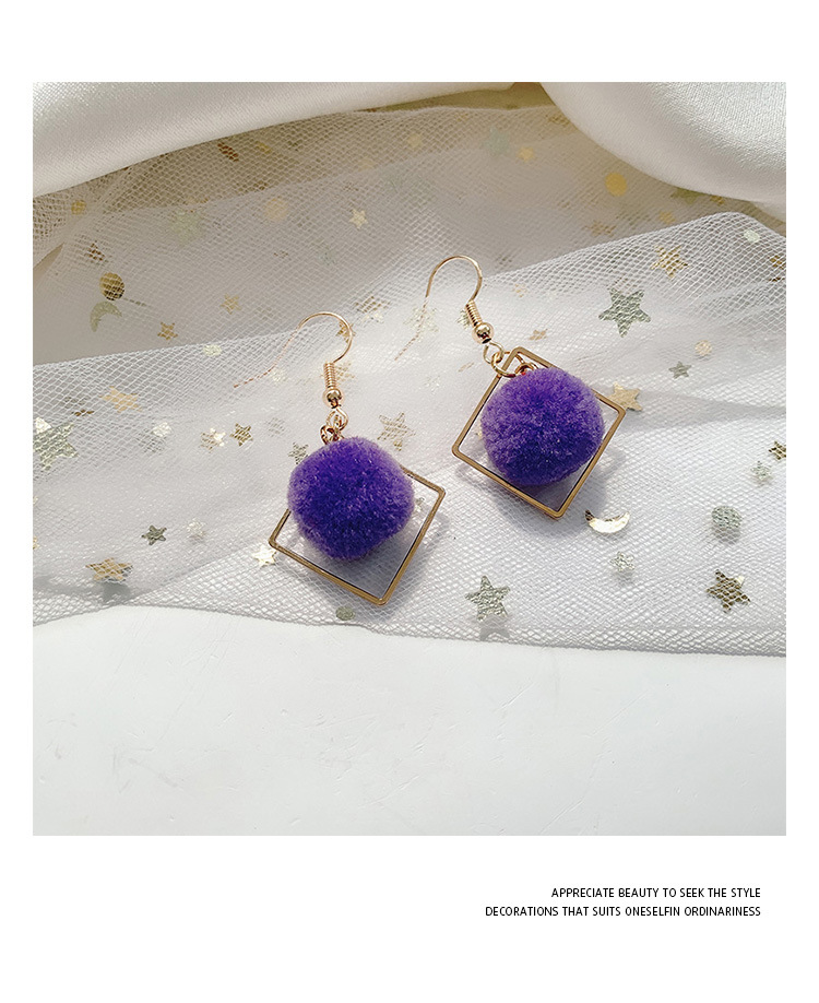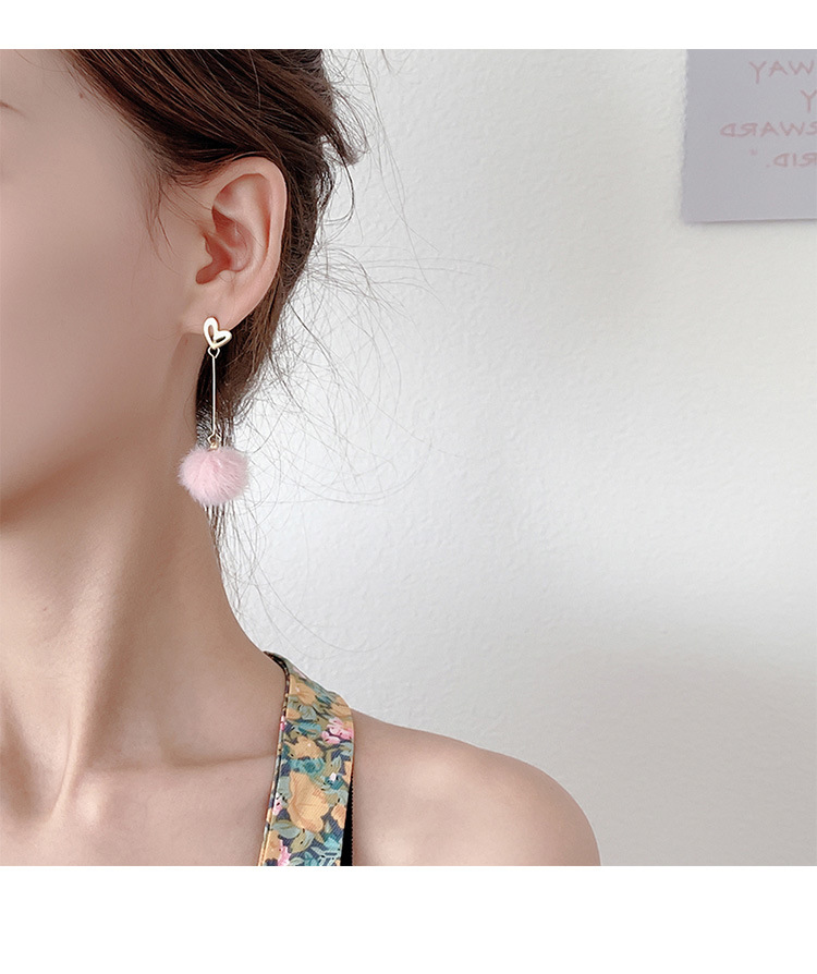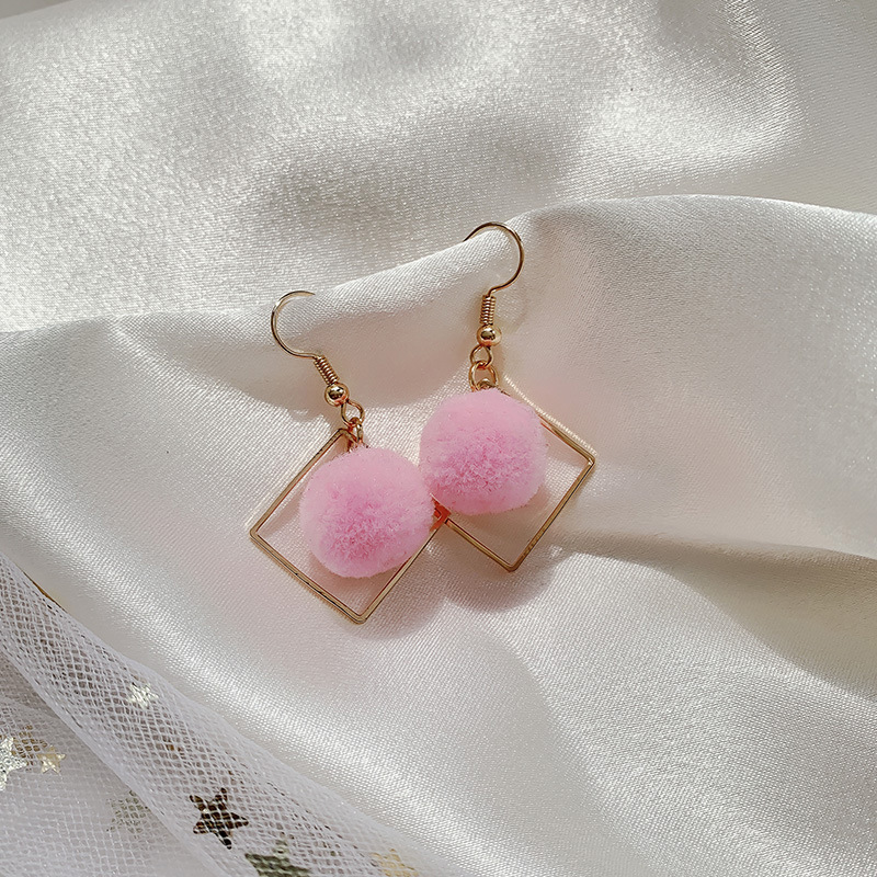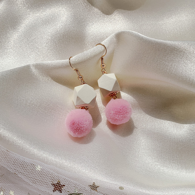 geometric pink fur ball ear hook