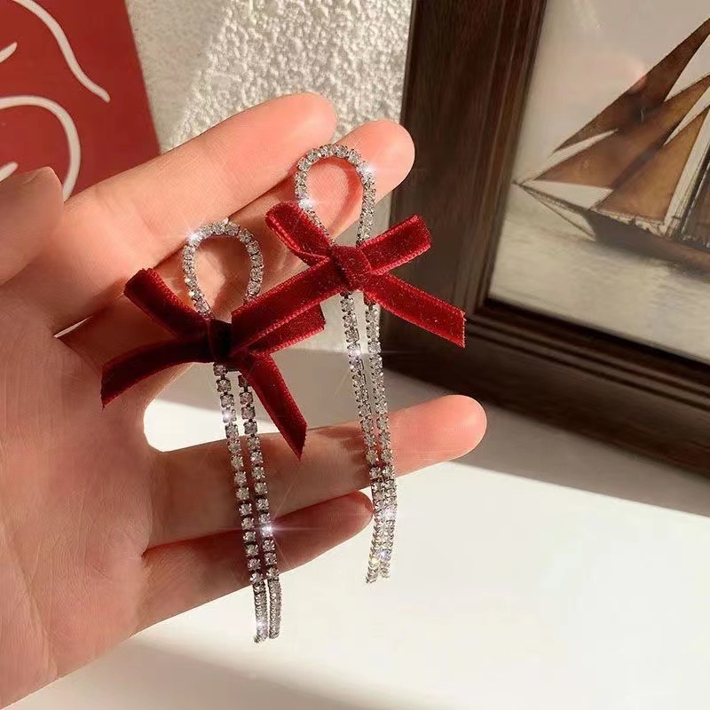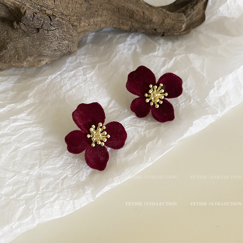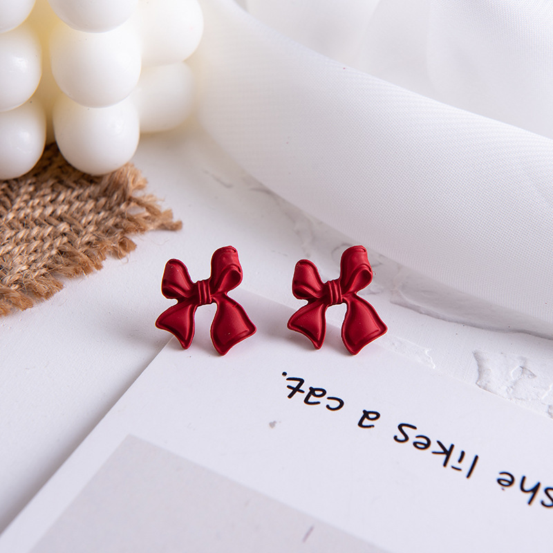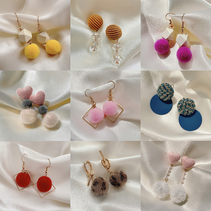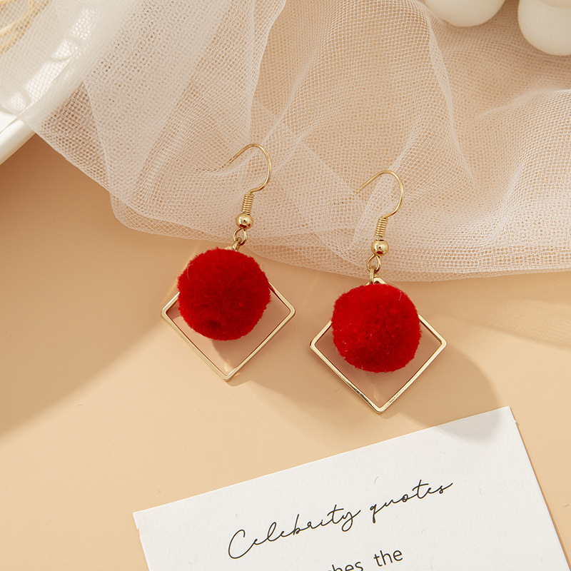 red lovely white wool ball ear studs