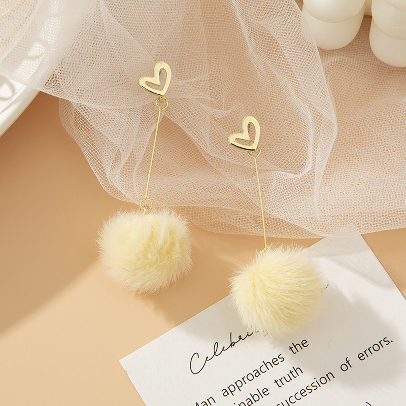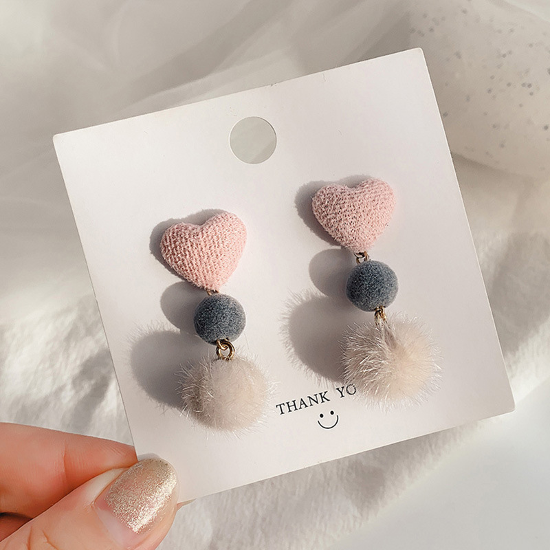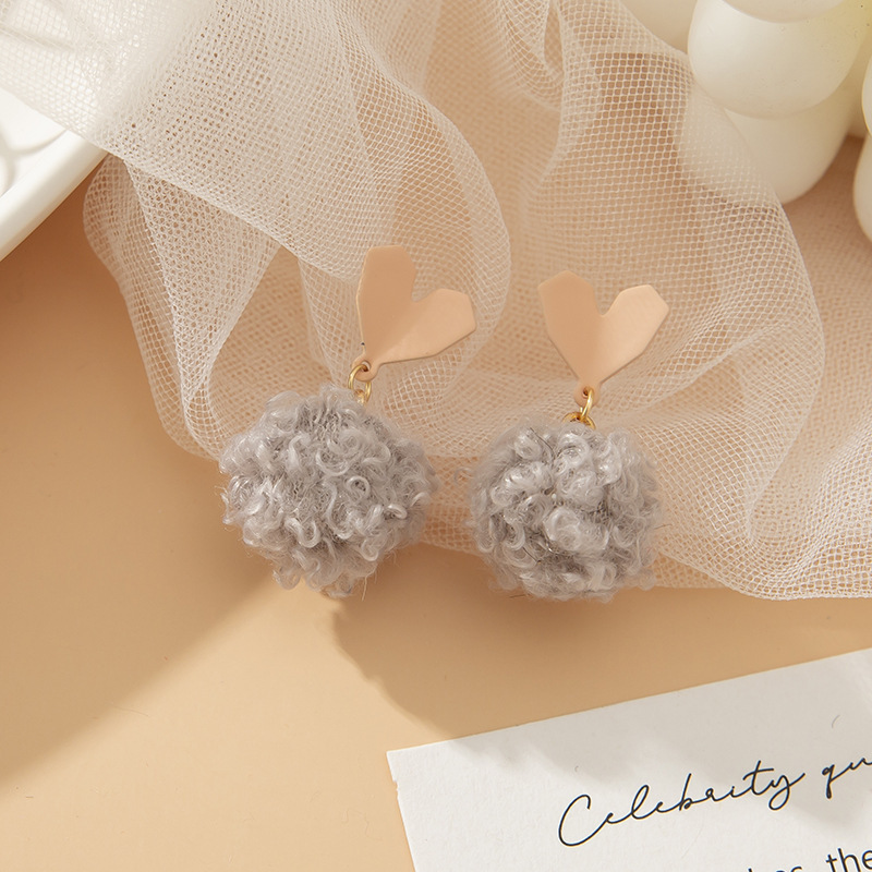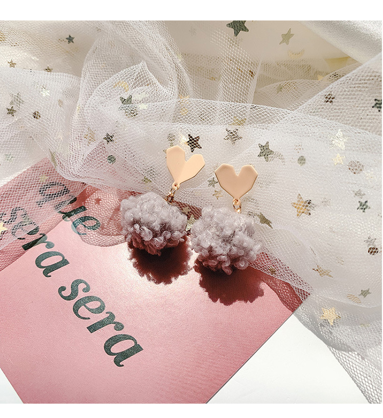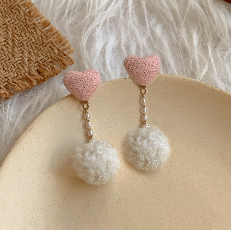 heart wool ball eardrops