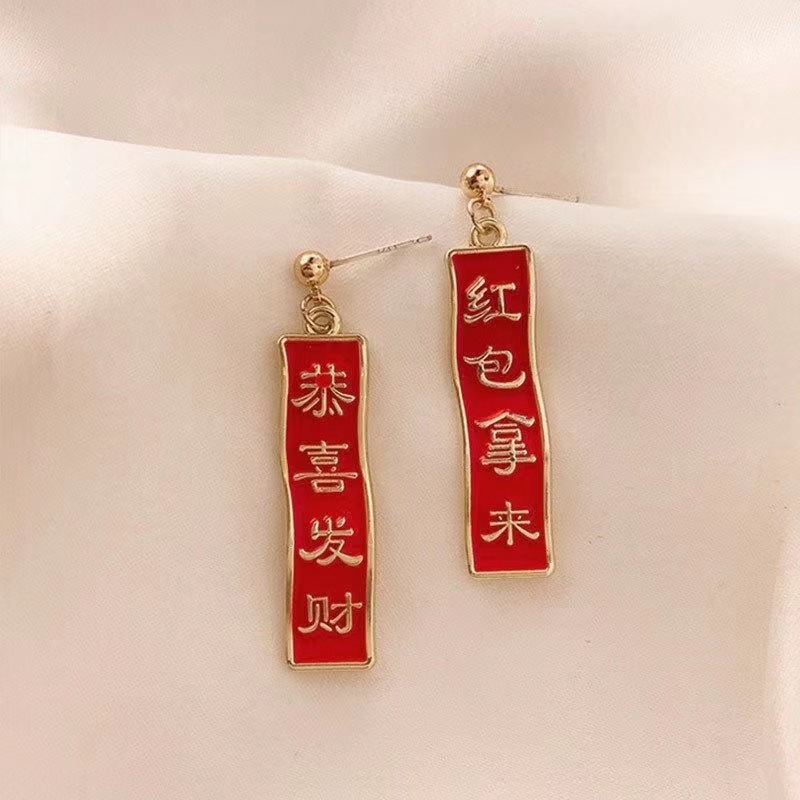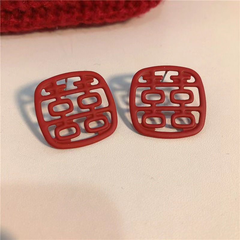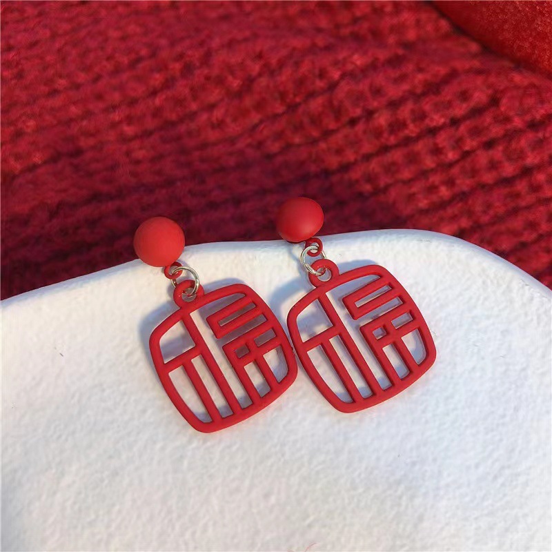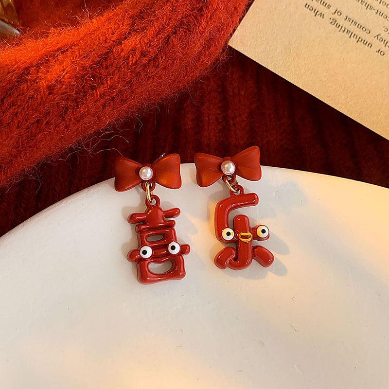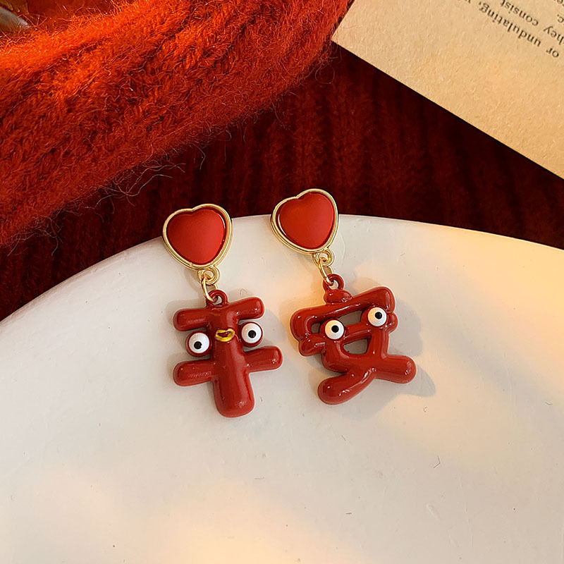 geometric red pom-poms ear hook
