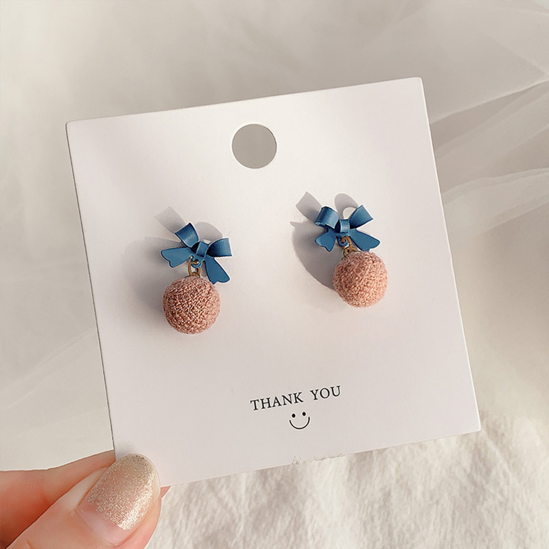 brown knitted round piece ear studs