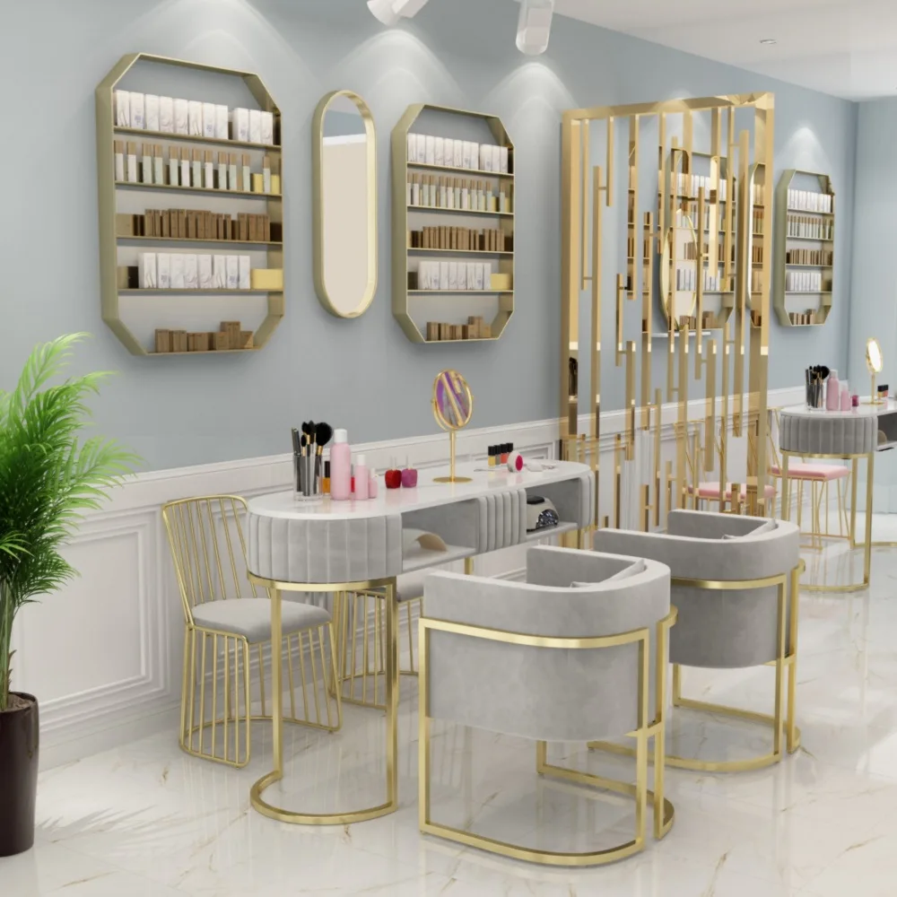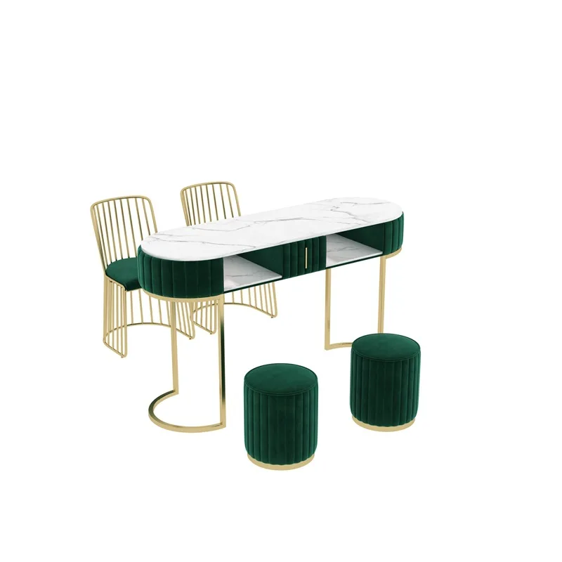 Modern Style Marble Metal Frame Beauty Manicure Table and Chair Furniture Set Salon Furniture Manicure Nail Table